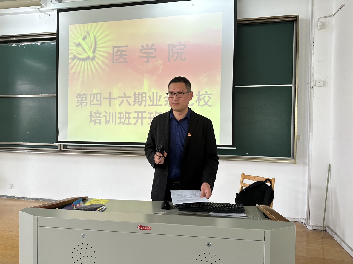 2023年4月7日中午,365bet 举行第46期业余党校开班典礼,365bet 党委副书记李联钊老师、学工办主任赵丽萍老师出席,党校班主任江欢老师担任主持。
