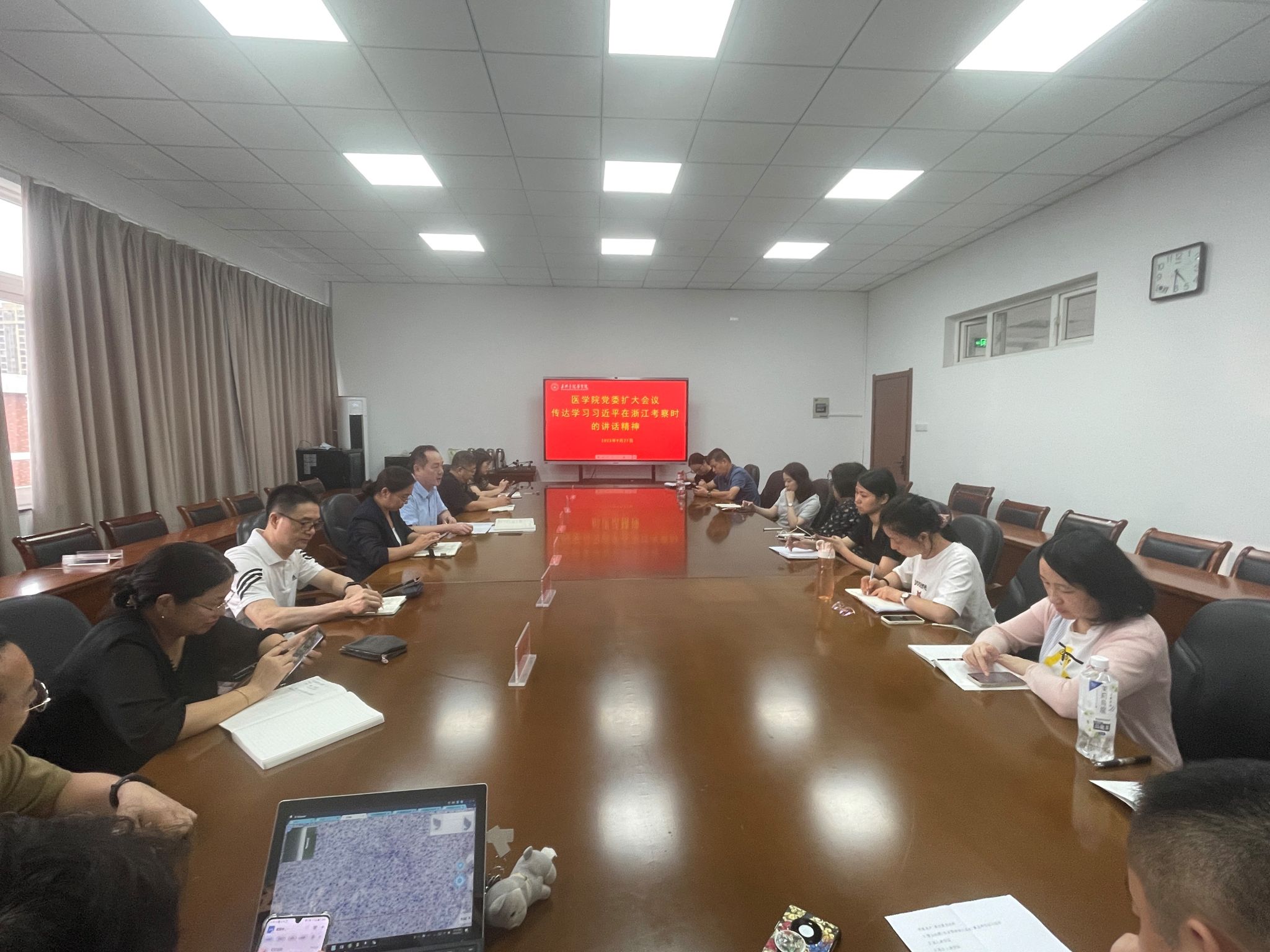 党委书记陈云飞就接下来学院贯彻落实讲话精神提出要求,一是学院各部门、各支部要按照学校党委相关部署要求,以最坚决的态度、最迅速的行动通过“三会一课”“教职工政治理论学习”等传达到每一位教职工,并做好学习贯彻,这是当前和今后全校、全院的头等大事和重要任务。二是把总书记的厚望与嘱托内化为强烈的责任感使命感紧迫感,转化为做好学院高质量发展工作的澎湃动力,要切实做好安全稳定工作,教育教学审核评估前期准备工作,新一轮学位点申报工作,学院团队建设和人才引进工作。