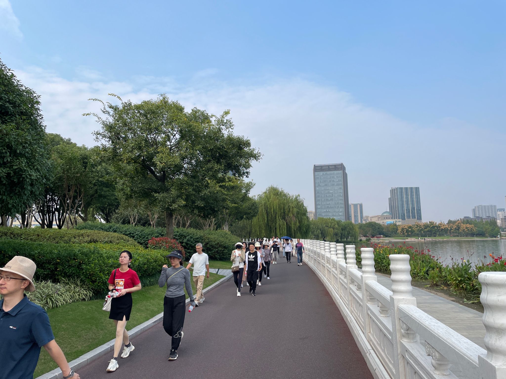 秋高气爽循绿道,波光潋滟赏秋风。本次健步走活动从梁林校区东门出发,途径展望路花海至姚家荡公园,全程九公里。大家兴致高昂、精神抖擞、阔步前行,丈量城市生态绿道,享受沿途美好自然风光,目光所及之处皆是浓郁的秋色。老师们边走边谈,交流工作生活,享受健步走带来的快乐,在健康、轻松、愉悦的氛围中完成了本次健步走活动,展现了365bet