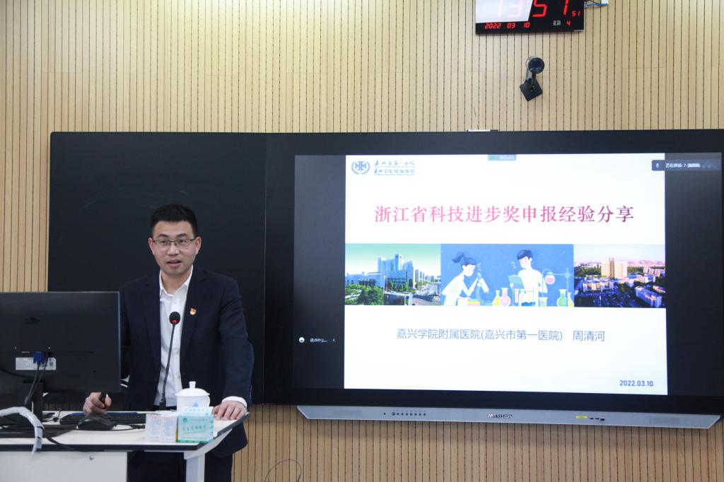 周清河副院长首先介绍了科技成果申报的具体流程以及注意事项,并且结合自身申请科技成果奖的经历做了详细介绍。此外,周清河副院长还介绍了附属医院为推动科技成果转化出台的政策、制度以及成功转化科技成果案例。