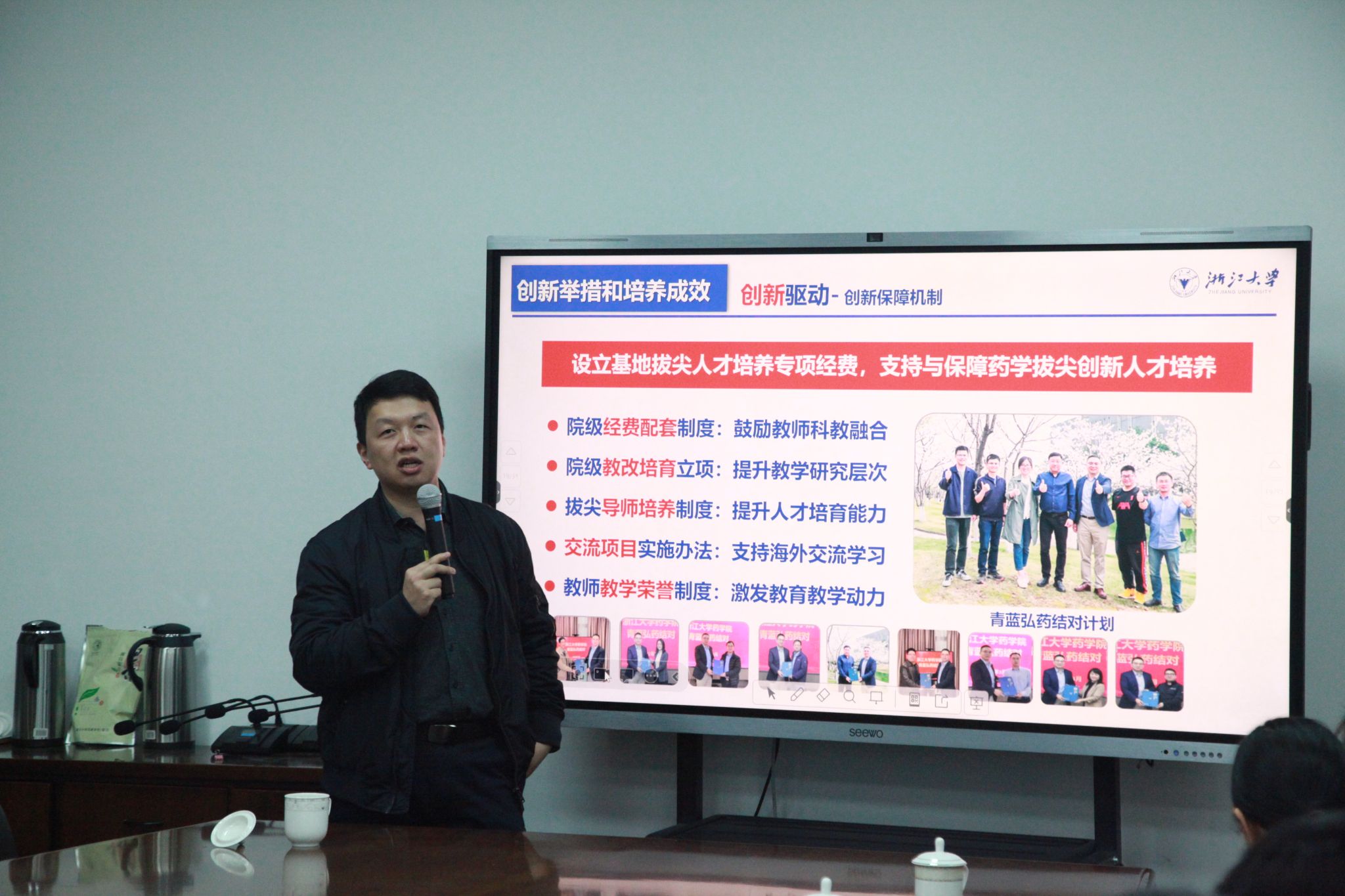 报告会由何治院长主持,张翔南教授分享了浙江大学药学院在药学专业人才培养方面的总体思路、创新举措和人才培养成效。与会教师就专业思政育人方案、拔尖创新人才培养体系、毕业设计环节教学、导师制培养等内容与张翔南教授进行了讨论。何治院长在总结中指出,希望通过本次专题讲座,药学系能够在专业建设和学科建设过程中理清思路,抓住重点,进一步有效推进专业认证、硕士点申报等具体工作,共同推动学院中心工作再上新台阶。