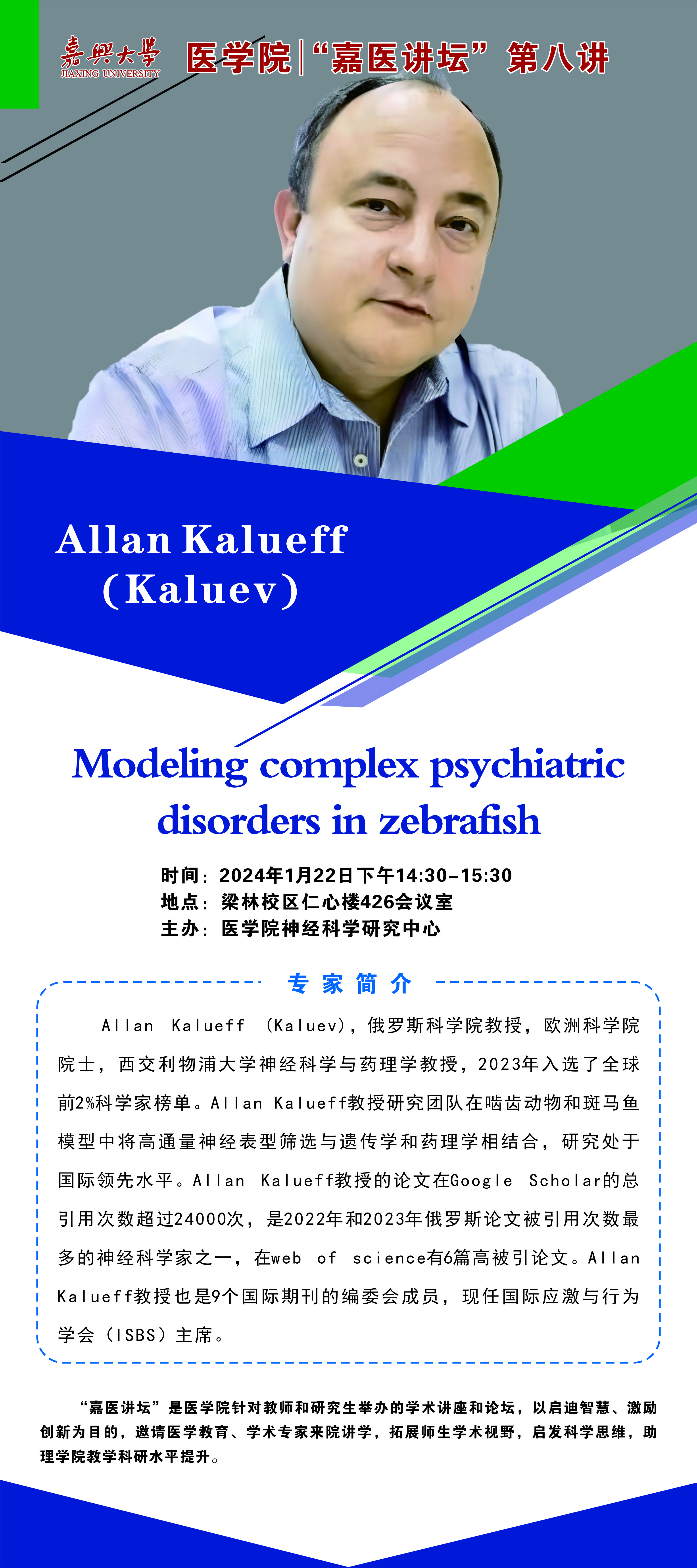 365bet 讲坛第八讲:欧洲科学院院士Allan Kalueff教授