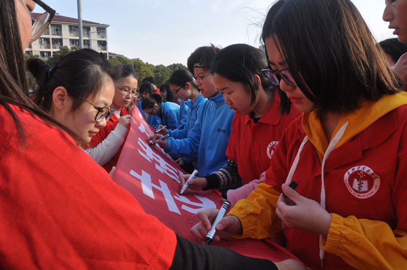 大一各班参与活动的同学们穿着整齐划一的服装在田径场集中宣誓。如今,手机的普及使得大学生沉浸在网络世界中成为低头族,忽略了太多身边的美好。慷慨激昂的宣誓后,同学们开始晨跑,青春、阳光、彩旗飘扬,清晨的跑道见证了年轻的朝气。完成跑步后,同学们井然有序地到横幅上签名退场。
