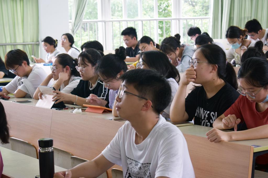 医本164班江思思、医本N161班沈康儿、医本162班叶华泽三位同学分别分享了自己的考研经验和心路历程。江思思同学考上了浙江大学神经内科专业,她分享了自己的备考流程,并从择校选择、考研心态等各方面给出了细致的建议;沈康儿同学被苏州大学录取,除了学习经验分享,经历调剂的他还从“努力”和“自信”两方面不断鼓励学弟学妹;叶华泽同学选择出国留学,目前收到了日本九州大学Offer,他畅谈了自己赴日留学的想法,向同学们分享了联系导师、准备材料等各方面的经验。