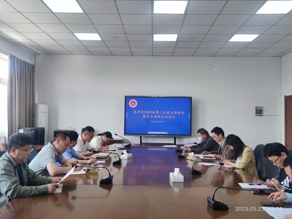 在仁心楼426会议室召开2023届毕业生第二次就业推进会暨毕业班班主任会议。学院领导班子、全体毕业班班主任、学工办辅导员参加会议。会议由学院党委副书记李联钊主持。