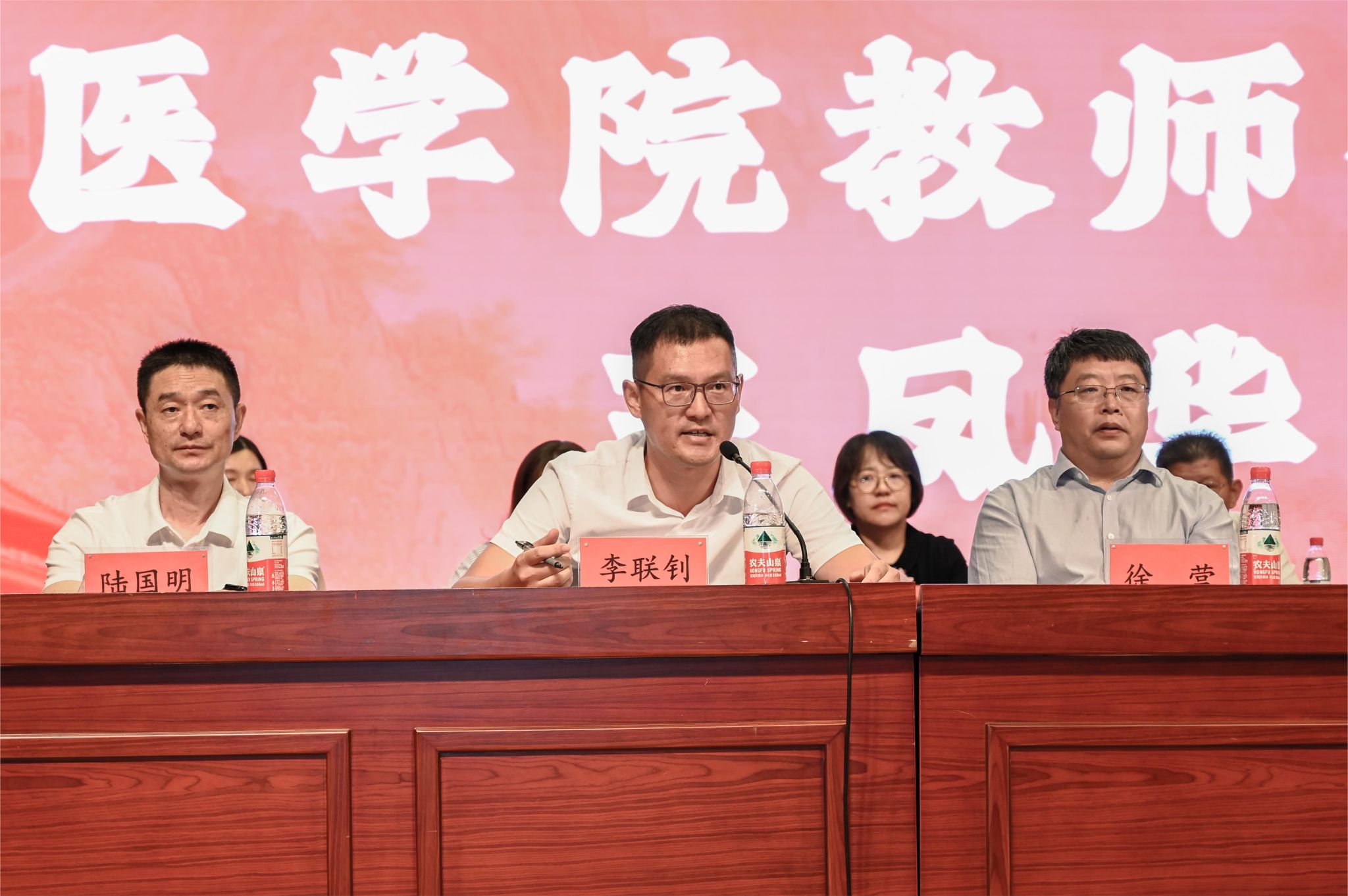 何治院长致辞,何院长对新生提出三点希望:一是希望广大新生牢记初心使命,永葆仁心情怀。在求医道路上坚守初心、矢志不渝,修炼美好心灵,涵养人间大爱。二是希望广大新生练就高超本领,勇攀医学高峰。在终身学习、创新学习中积累人生智慧,抢占学术之高地、敢发学术之先声、勇攀医学之高峰。三是希望广大新生厚植家国情怀,守护人民健康。锚定目标、砥砺奋进,努力成为具有“救死扶伤的医术、心存大爱的仁术、知识扎实的学术、方法高超的技术”的医学专业人才。