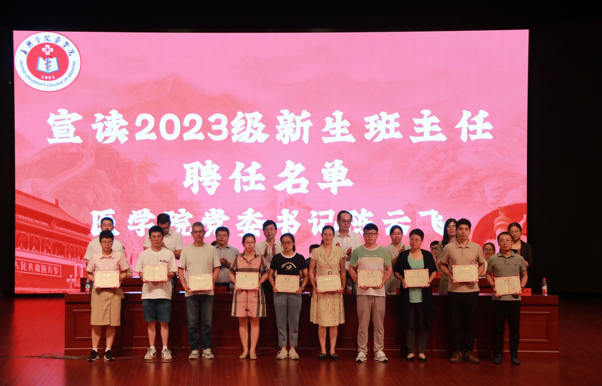 随后,由陈云飞书记宣读2023级新生班主任聘任名单,党政班子成员为班主任颁发聘书。
