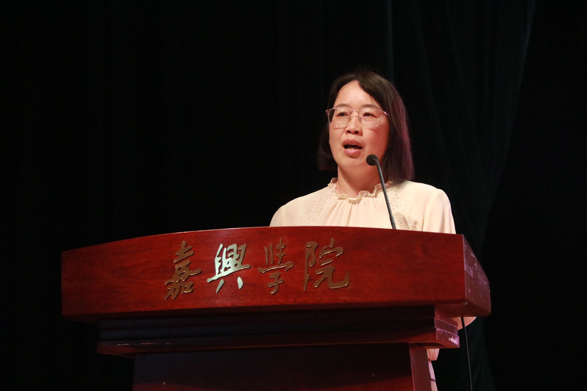 校友代表于群芬是嘉兴市第二幼儿园专职儿童保健员,她回顾自己在嘉院求学的美好时光,分享自己从农村姑娘到优秀医生的故事:“星光不问赶路人,时光不负有心人”,变化总是在自己默默笃行向前的生活中悄然发生。