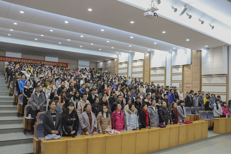 在主持人的带领下大家打开心扉,通过自省,让灵魂追上疲惫的身体,叩问心灵,明辨是非。随后在场的所有人起立唱响《感恩的心》,并且观看短片和聆听李燕飞同学讲述身边的道德故事。同学们也在紧接着的诵经典这一环节中感受到民族文化的魅力。任玉萍书记也对道德发表了自己的见解,呼吁同学们常怀感恩,崇善厚德。