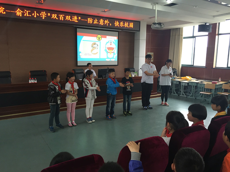 青年志愿者协会组织前往俞汇小学,为该校三、四年级的学生进行了一次主题为“防止意外,快乐校园”的预防、应对意外伤害的讲座。