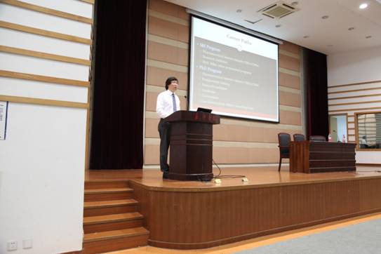 当天下午,Prabhu教授与王教授给药学专业学生做了题为“Pharmacy education and the role of pharmacists in the USA”和“Graduate edcation in US pharmacy schools”讲座。Prabhu教授简要介绍了美国健康科学西部大学药学院基本情况,教学特色及学习环境等。并与参加讲座的师生就具体的政策和要求进行了深入细致的探讨,广大师生收益匪浅。王教授介绍了目前美国药剂师的就业情况,并与学生进行了深入的交流。