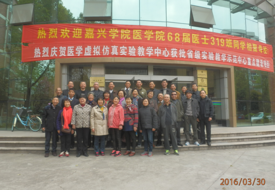 上午十时左右,我们在学院院办主任姜肖明和实验中心主任赵桂珠老师的带领下参观了实验教学中心。实验中心的模拟病房建筑结构和各种教学仪器设备使大家大开眼界,逼真的人体模型、一排排簇新的双目显微镜、十分细致的标本……,使我们非常非常羡慕;最令人耳目一新的是虚拟仿真实验室,赵桂珠老师还为我们演示了人体解剖仿真示教。使我们深切地体会了高科技在医学教学中所发挥着的极好的教学效果。有同学感叹地说:“我们再来母校学习多好啊!可惜没有个这机会了。现在的学生真是好福气啊!”通过对实验中心的参观,使我们深刻地体会到学院在改革开放中的新发展。我们深信学院一定能为国家培养出一批又一批医药卫生和护理的领军人才,为人类的健康事业做出不朽的贡献。我们也衷心地祝愿母校早日发展成为嘉兴大学。参观完实验中心后.大家在实验中心大楼前拍照留念。