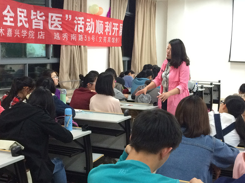 青年志愿者协会主办的“白衣天使,做自己的天使”活动在梁林校区八号楼205教室顺利举办。三草两木嘉兴学院店特邀上海护肤美容师李俊来为医学生们开展有关护肤的讲座。