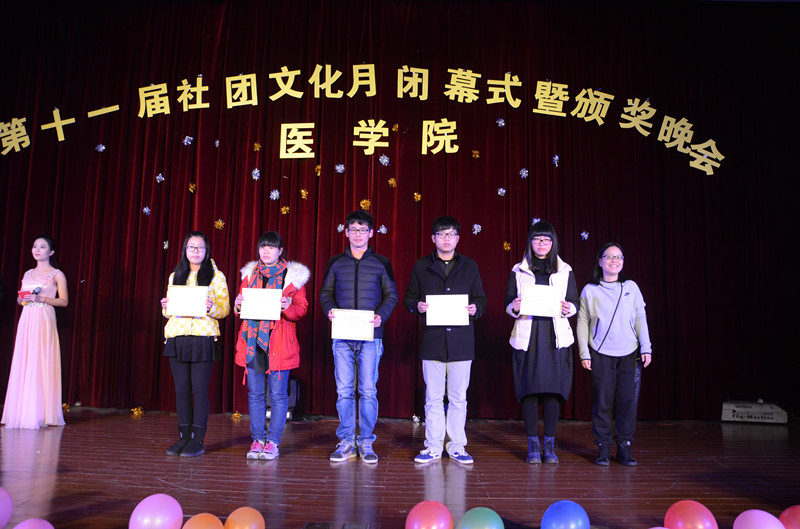 2014年12月29日晚,嘉兴学院365bet 第十一届社团文化月闭幕式暨颁奖晚会在梁林校区TCL报告厅隆重举行,出席本次活动的嘉宾有:365bet 党委书记惠太望老师,365bet 党委副书记黄金珠老师,护理系主任肖素香老师,学工办主任彭溶老师,团委书记赵丽萍老师,药学系副主任黄越燕老师,学工办江欢老师、学工办杨玲飞老师,团委周洁老师。