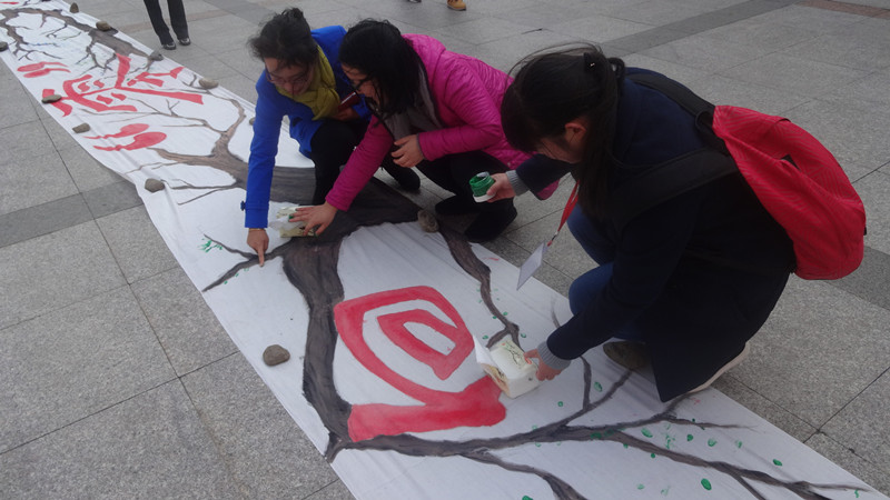 本次活动主要分为两场,第一场是在越秀校区美食苑门口开展,第二场是在梁林校区老食堂门口开展。为了向广大同学进一步普及“防艾禁毒”的相关知识,本次活动我们开展了形式多样的宣传活动,包括行为雕塑、发传单、发红丝带、拉海报、百尺白布按手印等活动,在整个活动开展过程中,同学们兴致盎然,有的向同学们积极宣传防艾知识、有的向同学们展示行为雕塑、还有的积极引导同学们参与按手印活动,活动现场,同学们参与度非常高。