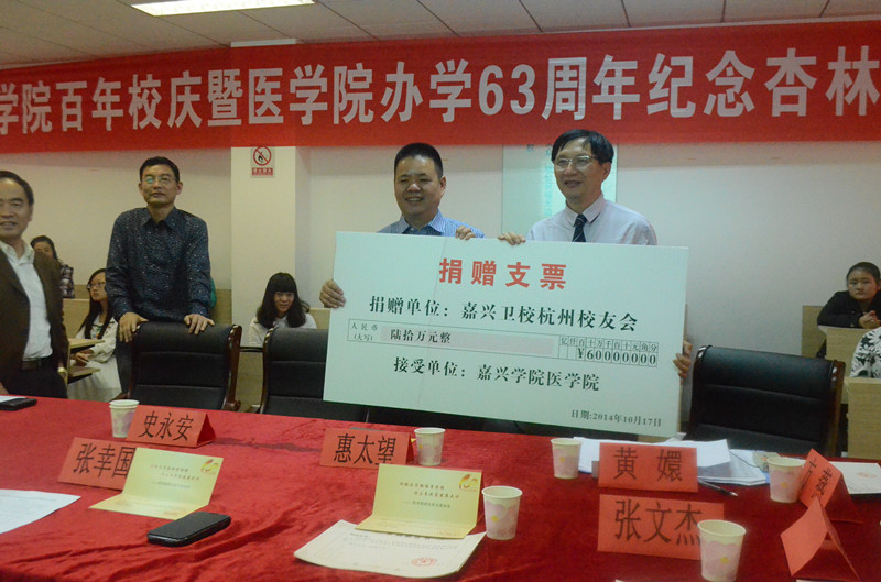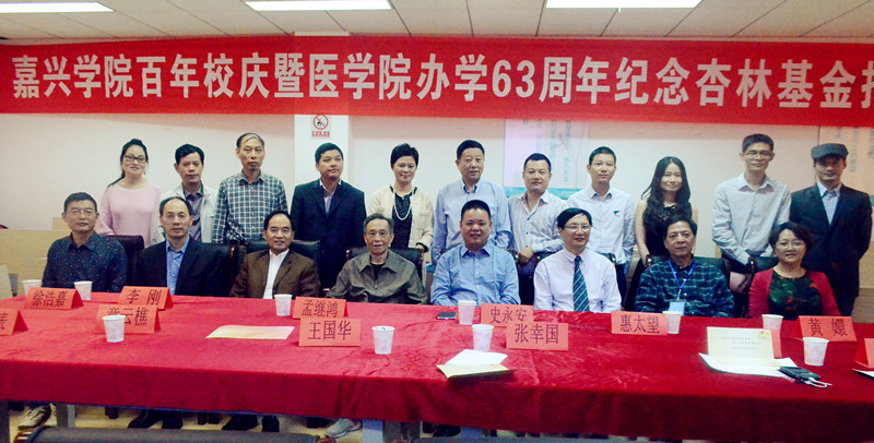2014年10月17日14:30,嘉兴学院百年校庆暨365bet 办学63周年纪念杏林基金捐赠仪式在365bet 实验中心601示教室隆重开幕。校党委副书记史永安老师,365bet 院长孟继鸿老师,365bet 党委书记惠太望老师,副院长黄嬛老师,365bet 各位优秀校友及部分在校师生一起见证了本次杏林基金捐赠仪式。
