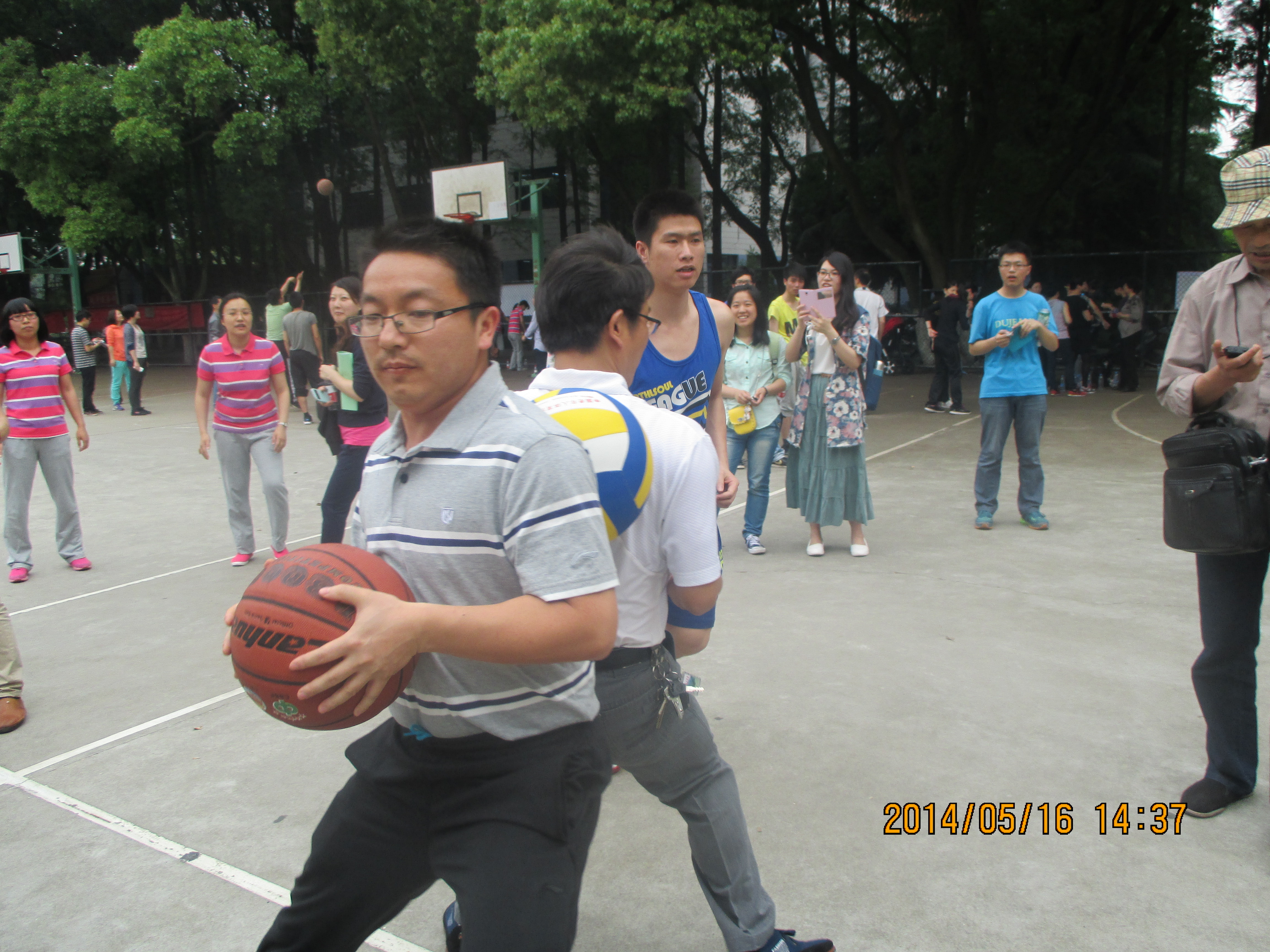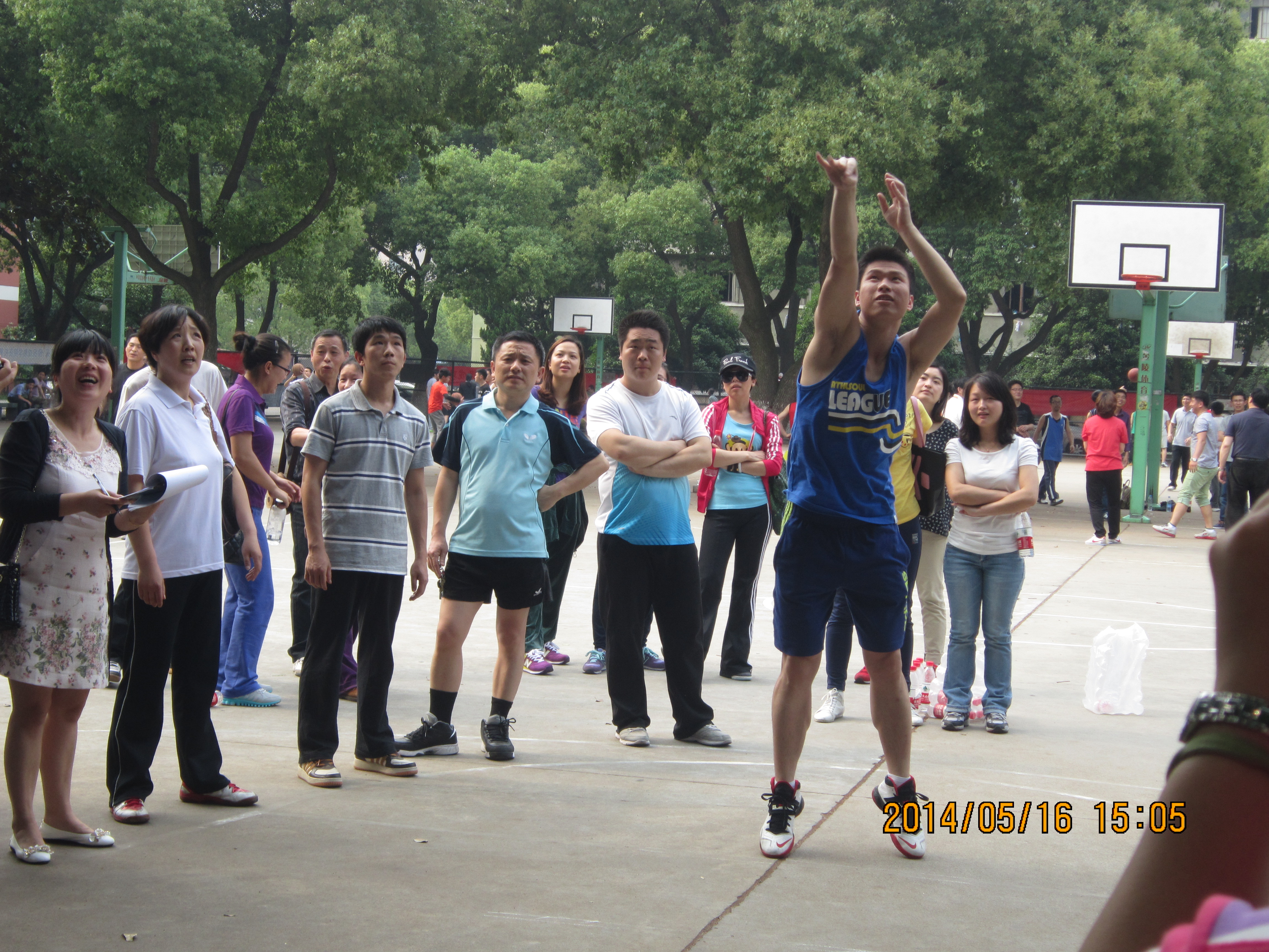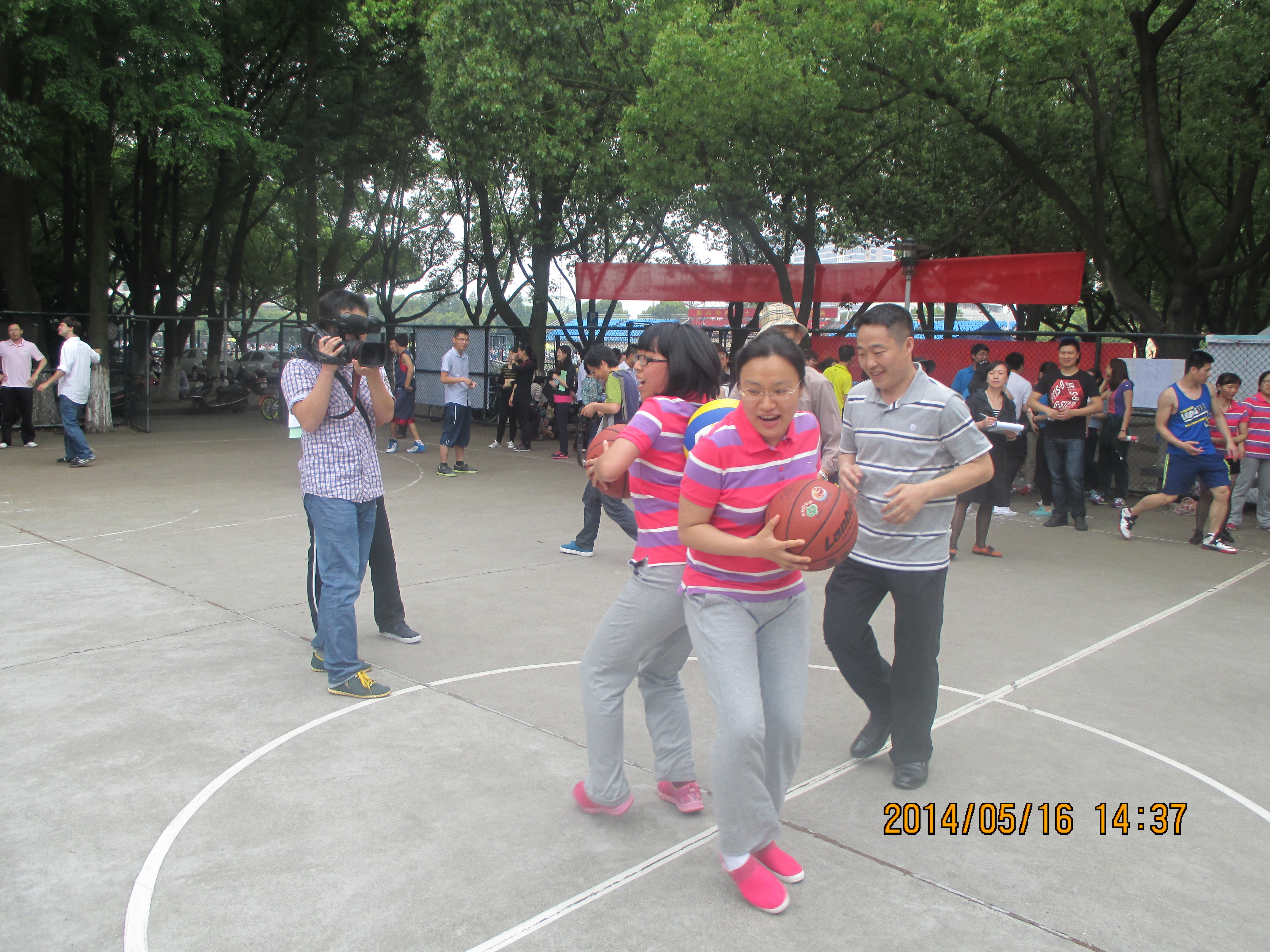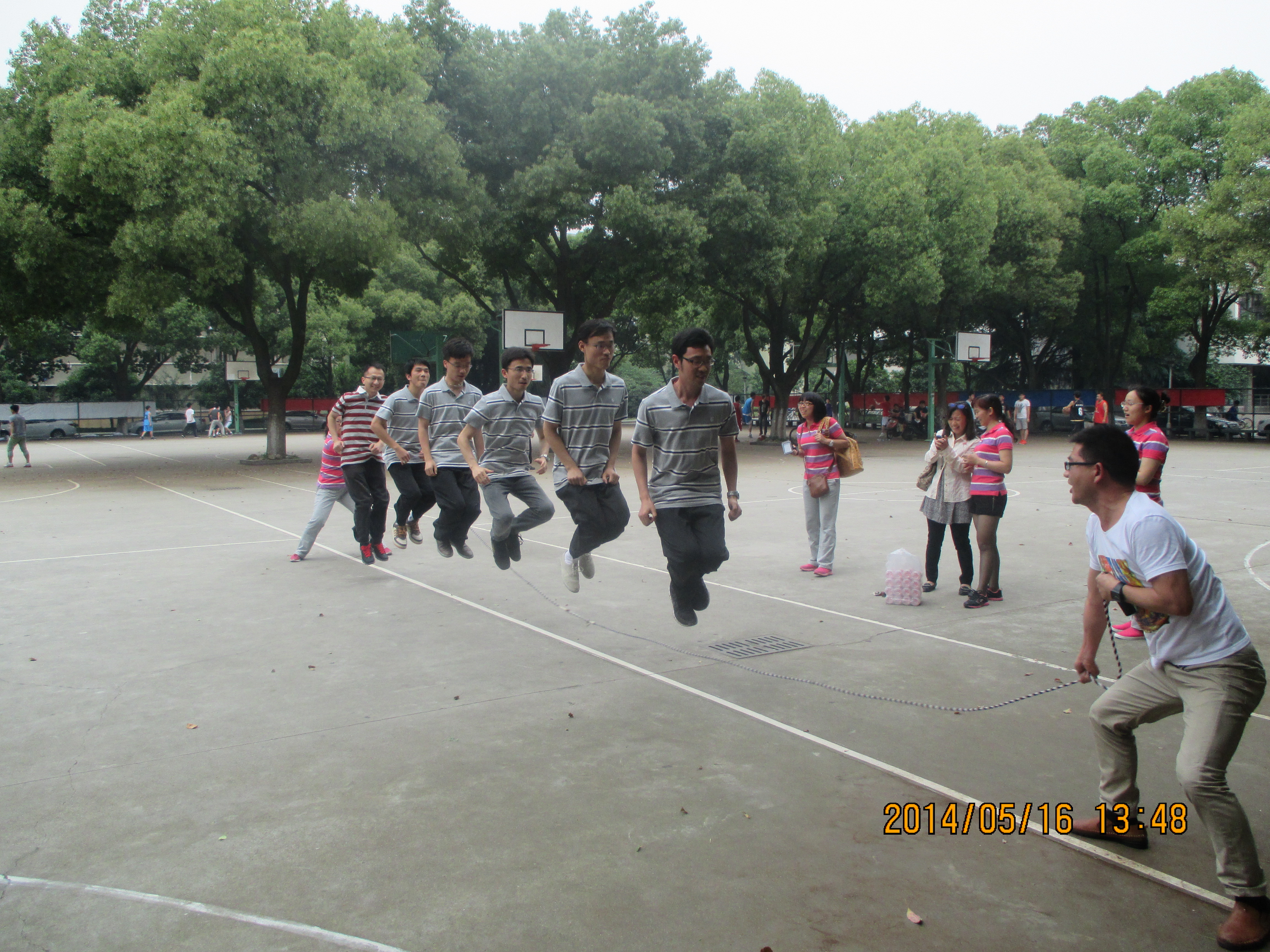 2014年5月16-17日,嘉兴学院第十四届体育运动会顺利召开。我院派出30余名教职工组成的代表队参加了4个教师集体项目的比赛。各位老师从三尺讲台转战田径赛场,奋力争先,团结协作。只看见操场上一根长绳上下翻飞,篮框下一个个投球百发百中,跑道上矫健的身影来回穿梭……我院教职工取得了优异成绩:团体总分第四,集体跳长绳单项第一,定点投篮第六,迎面接力第六,双人夹球跑接力第六……我院教师屡屡斩获佳绩,充分发扬了我院教职工能文能武、积极拼搏的精神风貌。