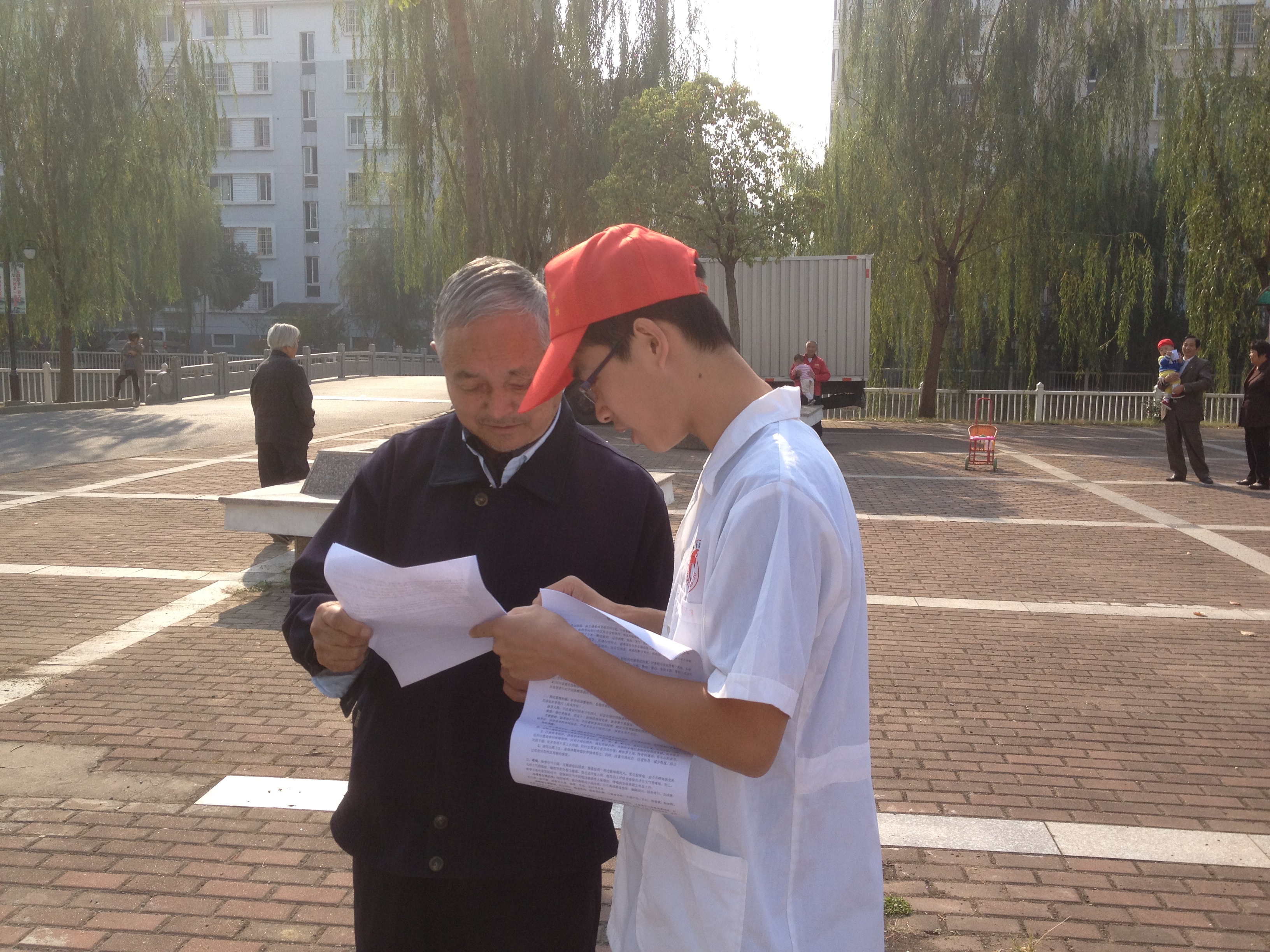 医本091/092支部十名党员同学在金穗社区广场开展志愿者服务活动,吸引了现场很多老人和小孩参与。
