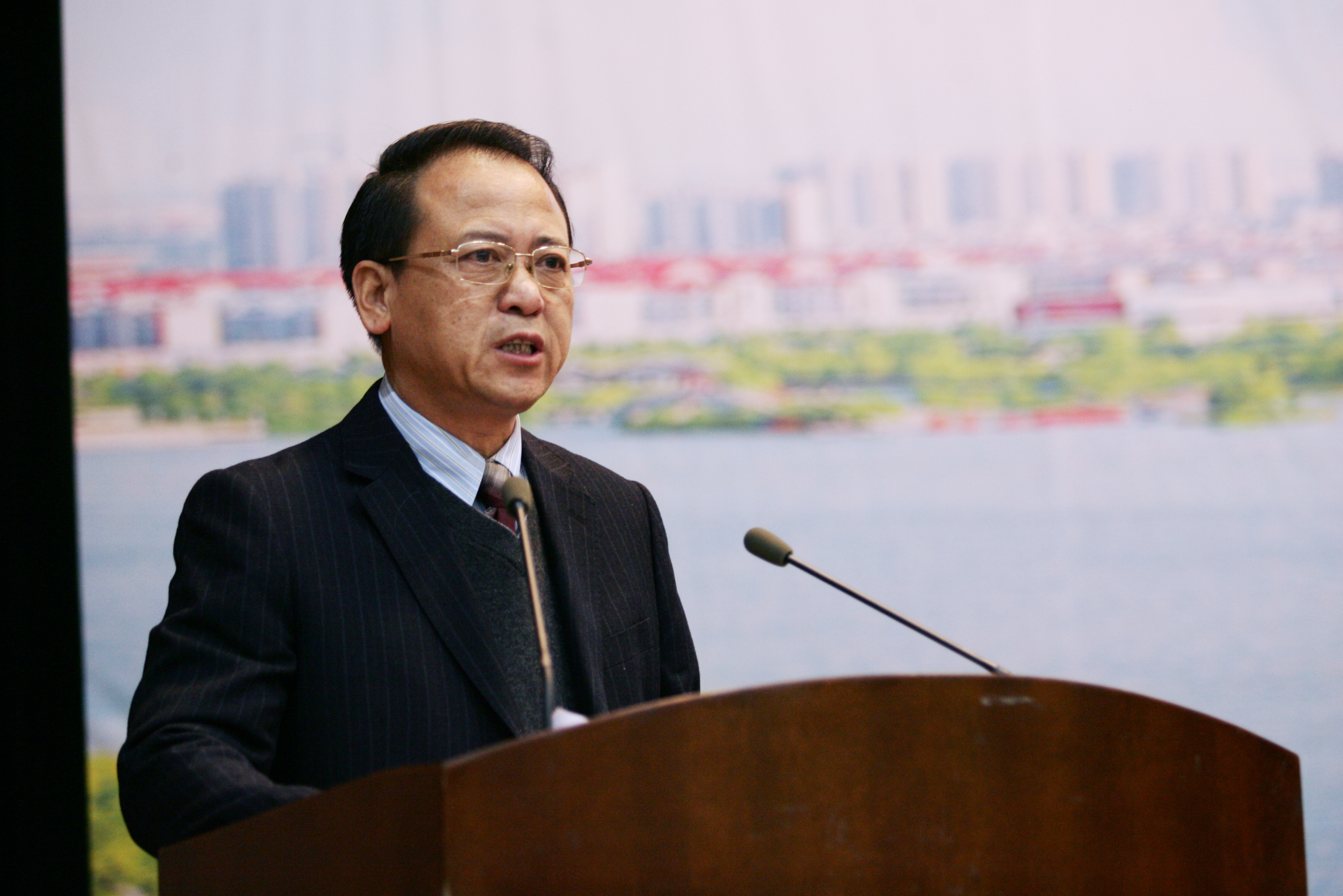 校长徐宪民代表学校作工作汇报,在介绍了学校的概况后,从宗旨与目标、建设与成效、改革与发展等三大方面进行了简明扼要的汇报。