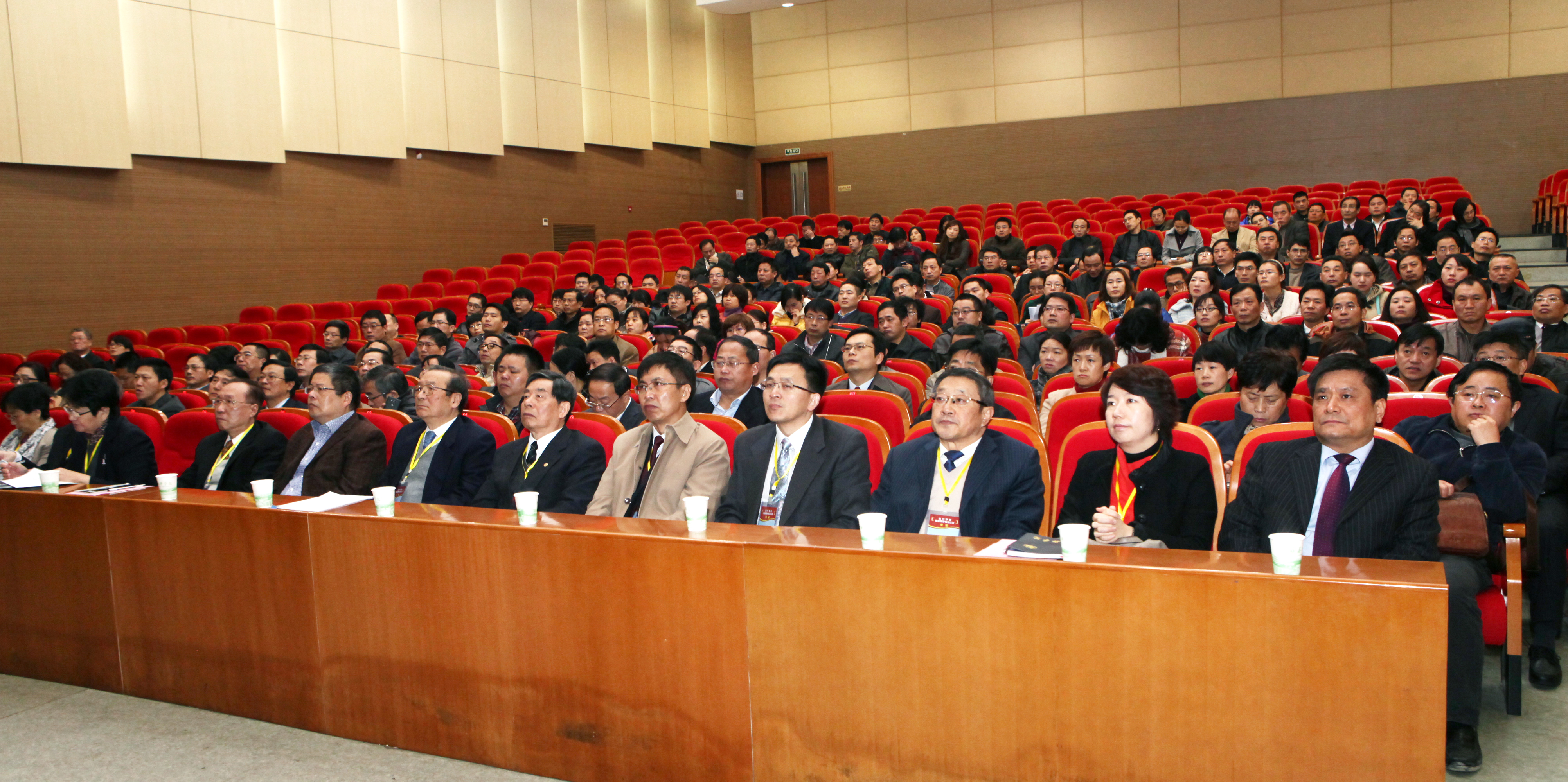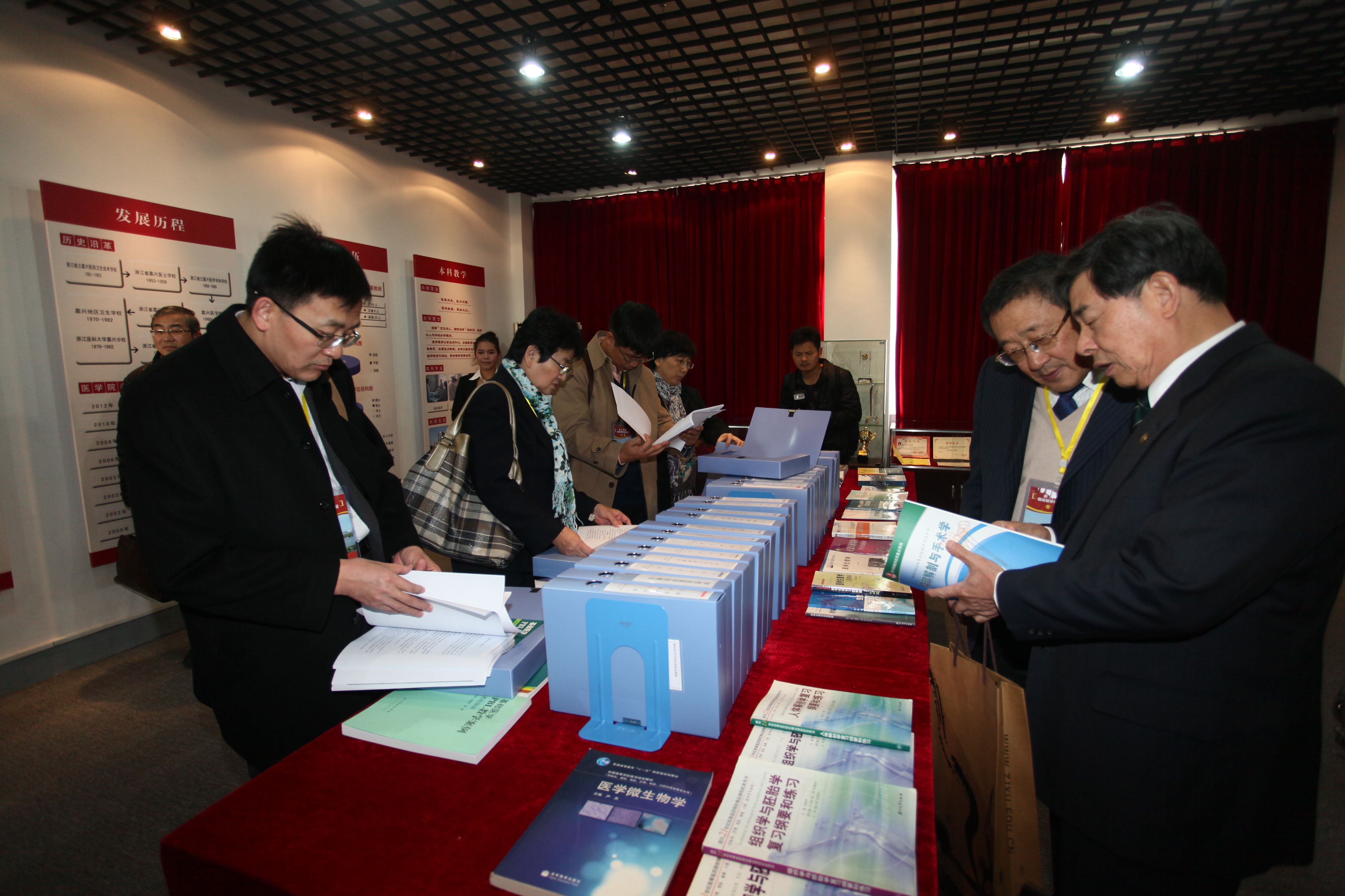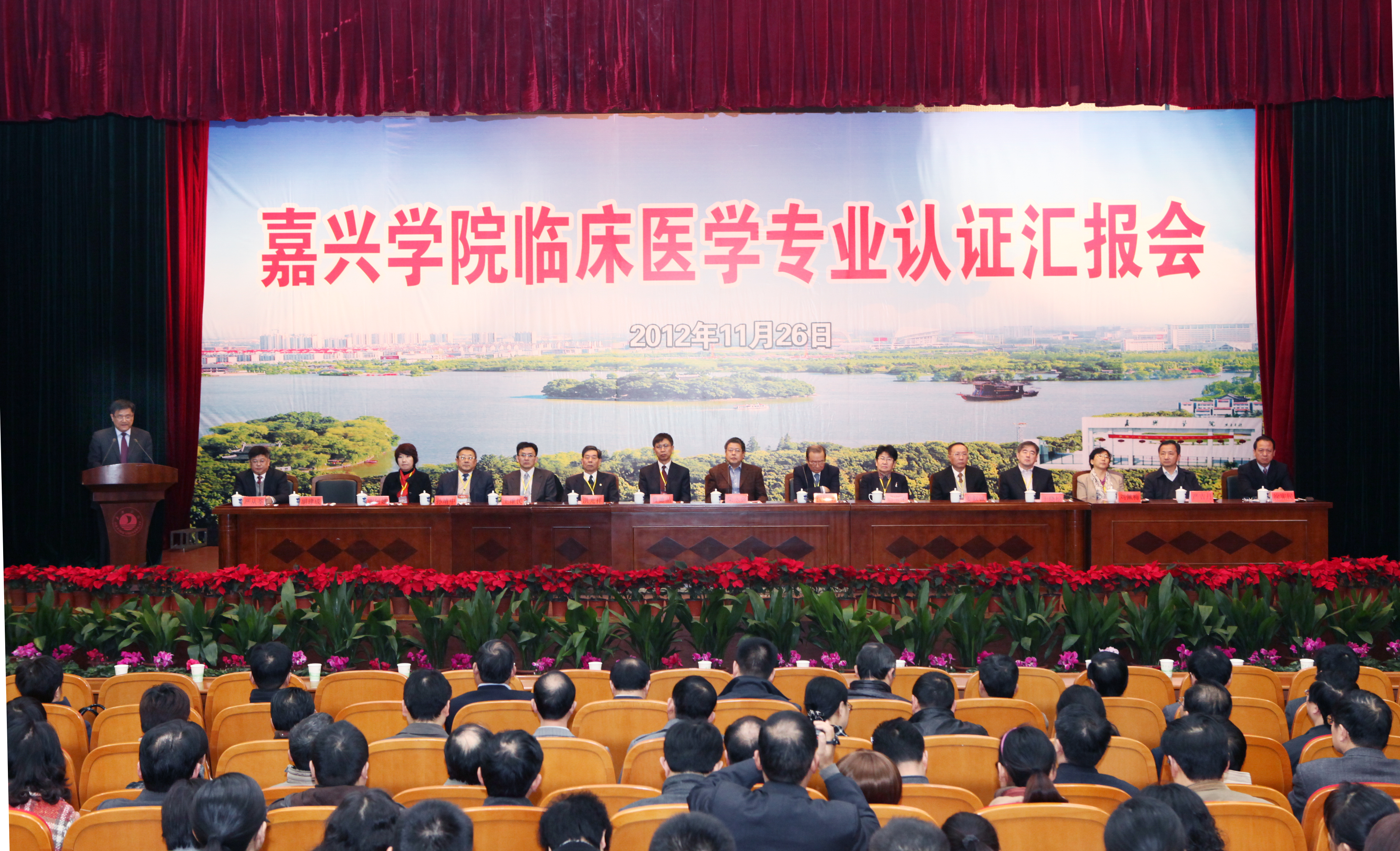 来自兄弟院校的观摩代表、嘉兴部分县市卫生行政部门负责人、全体中层干部、附属医院领导、学校各系主任、研究所所长、专业建设负责人、校教学工作委员会、督导委员会成员、教师代表等300多人参加了汇报会。