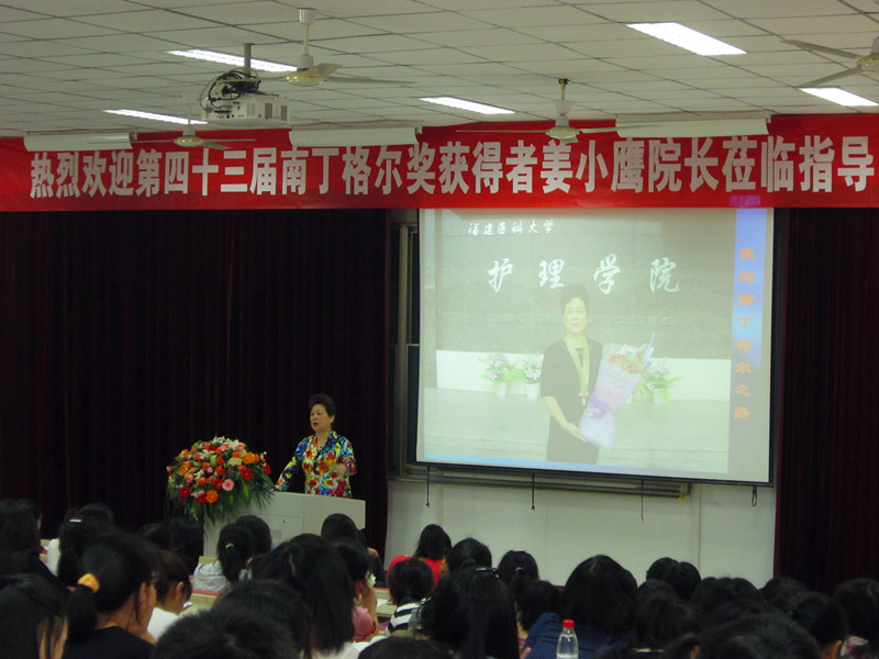 护理专业的现状以及发展中遇到的问题,姜院长针对张书记提出的问题一一作了交流指导,并对09版护理专业培养方案提出意见和建议。会后,姜院长结合自身的亲身经历和奋斗历程为护理专业学生作题为“在坚守中拼搏、在开拓中进取”的报告会,并与护理学生进行了互动。