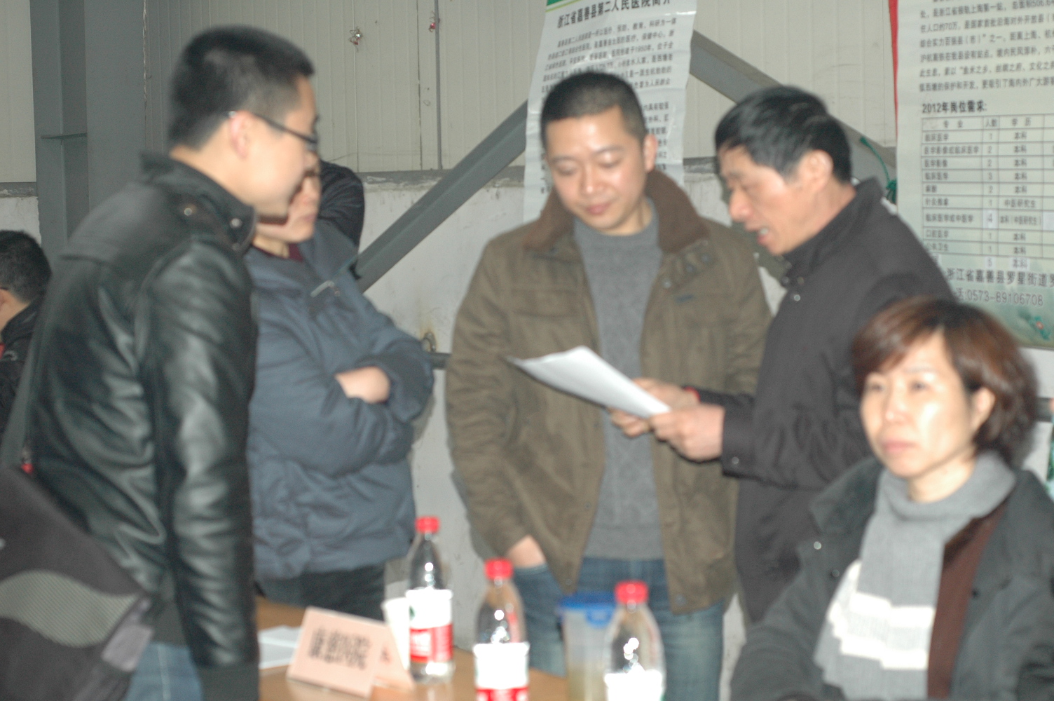 招聘现场气氛热烈,招聘方热情地为同学们介绍本单位情况,同学们也主动向用人单位提交个人简历和报名表。当天下午,海宁市卫生局组织报考同学在梁林校区统一面试,我院有20名同学通过面试。嘉善县卫生局组织报考同学在梁林校区统一笔试,通过笔试同学参加2月23日由卫生、人事部门统一组织的面试。
