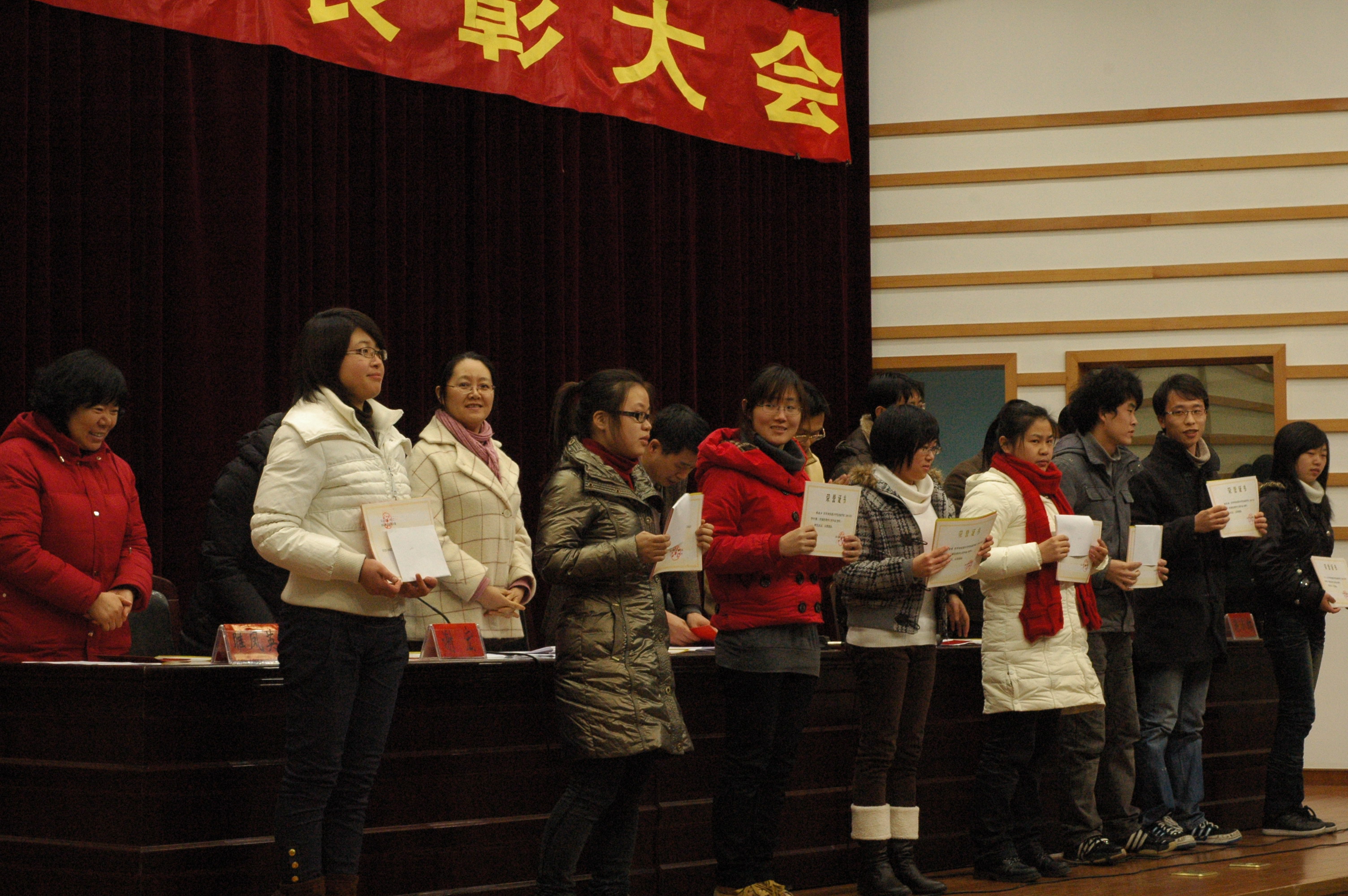 党政班子、三办主任、10级全体学生以及受表彰学生出席大会。大会由党总支副书记谢宏主持。大会表彰在2010年中取得优异成绩的各类优秀学生、先进集体和英语四、六级考试优胜班级,并对即将到来的期末考试进行动员。