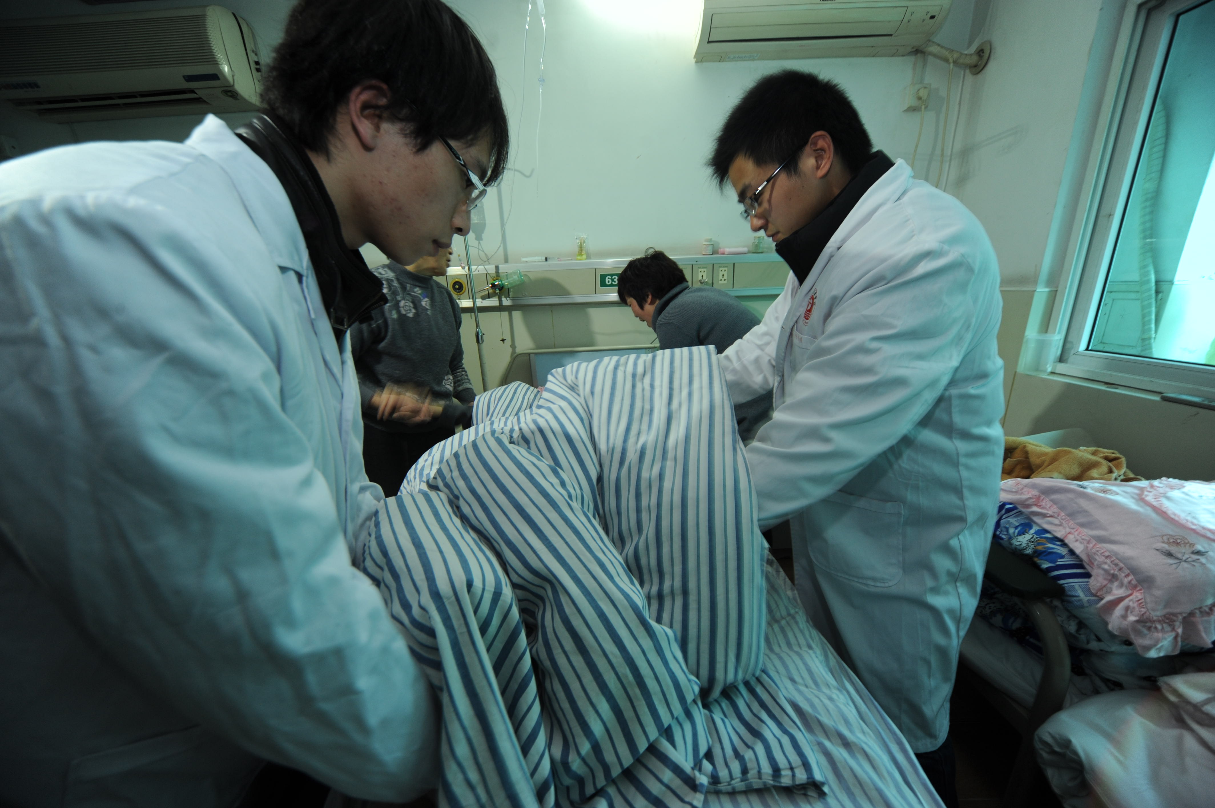 团总支书记赵丽萍带领4名学生志愿者(3名为学生党员)来到武警医院探望并护理英雄俞文华。