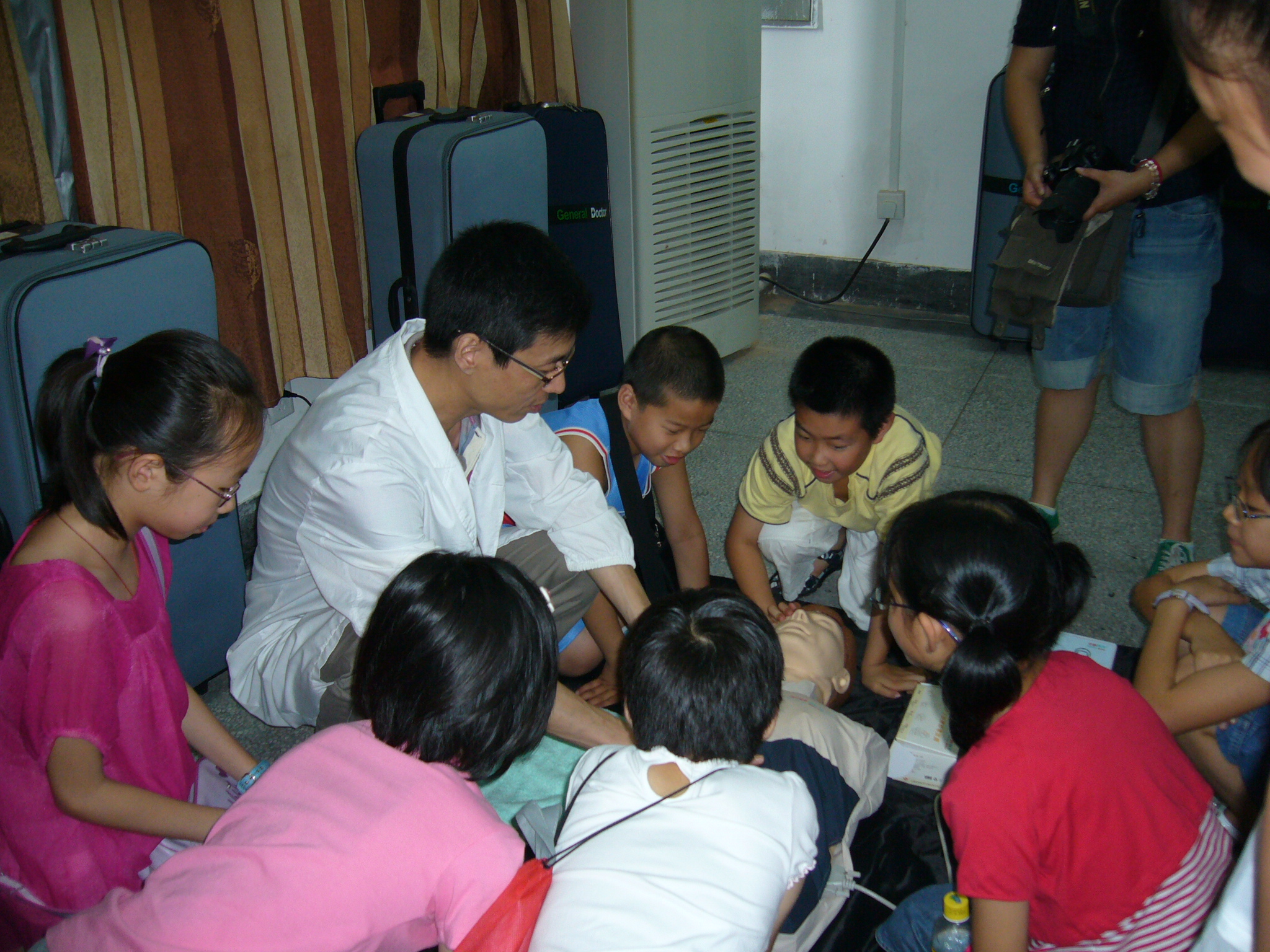 护理三支部的活动主题为“探索人体奥秘,维护生命安全”, 为嘉兴市秀和社区青少年暑期夏令营40名学员开启医学思维,培养医学常识,感受大学氛围。