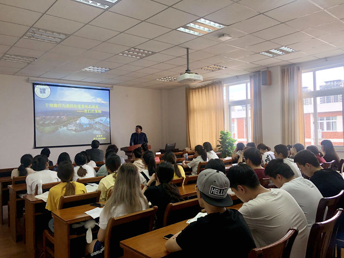 的五十余名老师和学生参加了学术报告会。报告向在场师生展示了三位教授的最新研究内容,其中高建青教授讲述了干细胞作为新型基因传递载体用于脊髓损伤和缺血性脑卒中治疗的策略,Tabata教授对细胞损伤修复和组织再生修复的临床研究进行了详细的阐述,Jo博士介绍了生物可降解成像材料在细胞内定位追踪的研究进展。精彩的报告引起了在场师生热烈的交流和讨论,几位老师学生向教授们提出的疑问也都一一得到了解答,大家都获益匪浅。