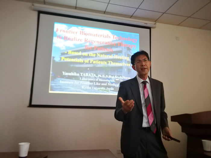 的邀请,浙江大学药学院副院长高建青教授,日本京都大学Yasuhiko Tabata教授和日本京都大学Jun-ichiro Jo 博士三位专家教授于6月20日(星期四)下午 14:30在梁林校区 1号楼 506会议室做了三场精彩的学术报告,题目分别为《干细胞作为新型基因传递载体用于神经损伤修复的策略》、《Biomaterial Technology of in vivo Cell Recruitment for Tissue Regeneration Therapy》和《Regeneration imaging by drug delivery technologies》。学术报告由陈艳副院长主持,来自365bet
