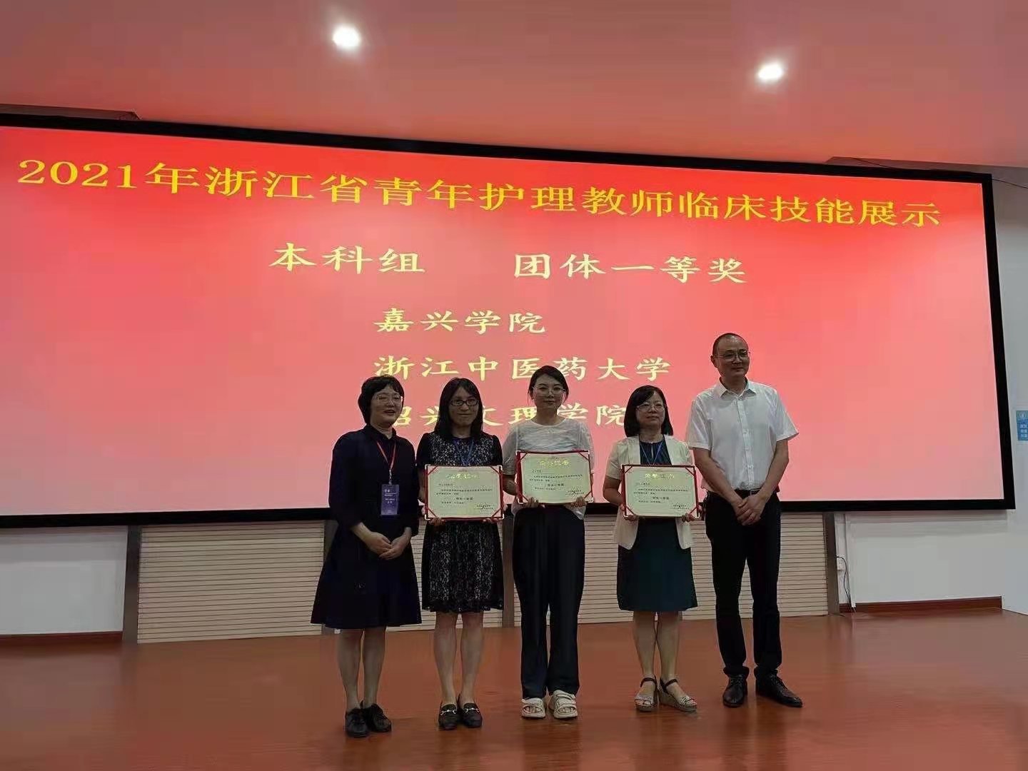 7月16日,浙江省青年护理教师临床技能展示在湖州师范学院举行。我校365bet 护理学系徐鋆娴、附属第一医院张凤萍获个人一等奖,雷璇获个人二等奖,参赛团队获一等奖,并将作为浙江省代表队之一参加8月份举行的全国护理本科院校教师临床技能竞赛。 本次比赛由浙江省护理学会主办,湖州师范学院承办,共有来自全省8所护理本科院校和4所高职院校的30名教师参加。比赛旨在全面考核参赛教师的教学能力、学术水平、职业素养及临床护理基本技能,检验和展示我省本科院校护理专业教学改革成果,推进护理专业的教育教学改革,不断提高人才培养质量。比赛采用情景模拟方式,从操作前物品的准备,到操作过程的规范性、准确性、熟练性,全面考核选手的职业素养及团队配合。