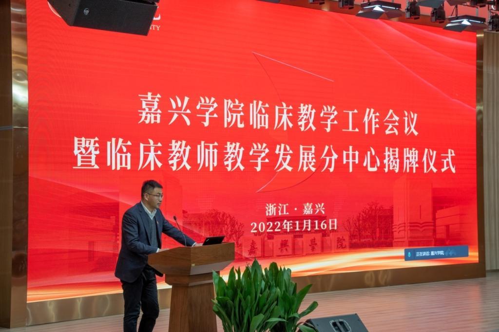 随后,学校教师发展中心(教学质量监控中心)徐永良主任宣读了《关于设立嘉兴学院临床教师教学发展分中心的通知》。学校教务处(医管办)处长艾宁宣读了《关于同意设立365bet
