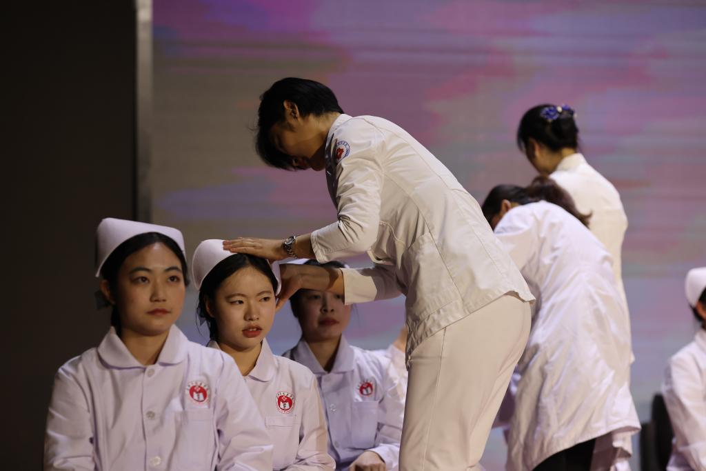 会上,护理学生通过舞蹈、礼仪展示、朗诵、合唱等多种形式进行庆祝,用精彩演出诠释护理人为爱坚守的崇高精神。大会在全场合唱《星辰大海》中落幕。