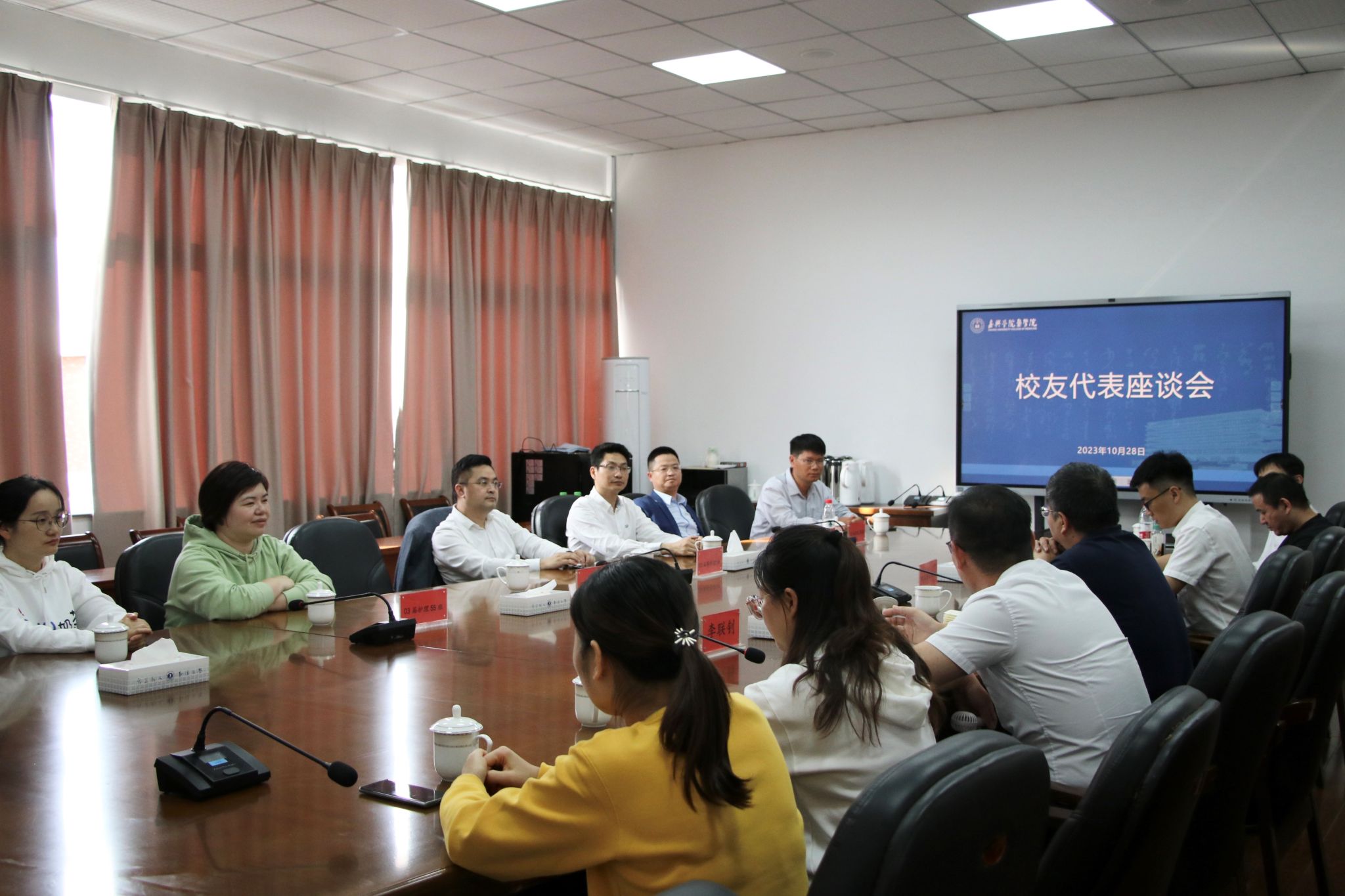 徐营从学院历史沿革、教学体系、师资队伍、专业建设、科学研究等方面向校友代表详细介绍了学院近年来的发展情况,他表示,学院将继续提升本科人才培养质量,努力提升办学层次,独立开展研究生教育,以学科建设为龙头,提升科研水平,为经济社会发展作贡献,提升社会服务水平。最后双方进行了深入的现场交流。