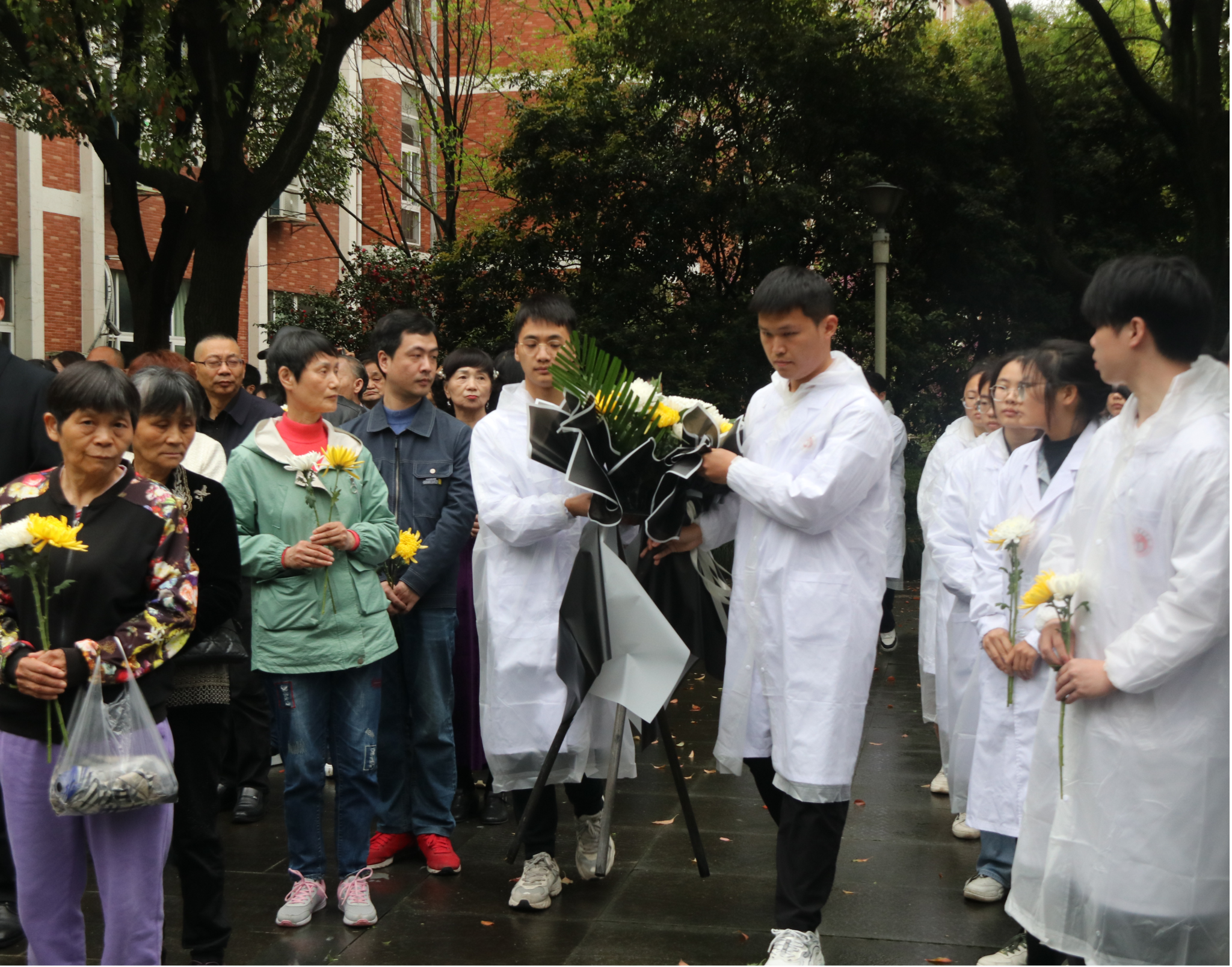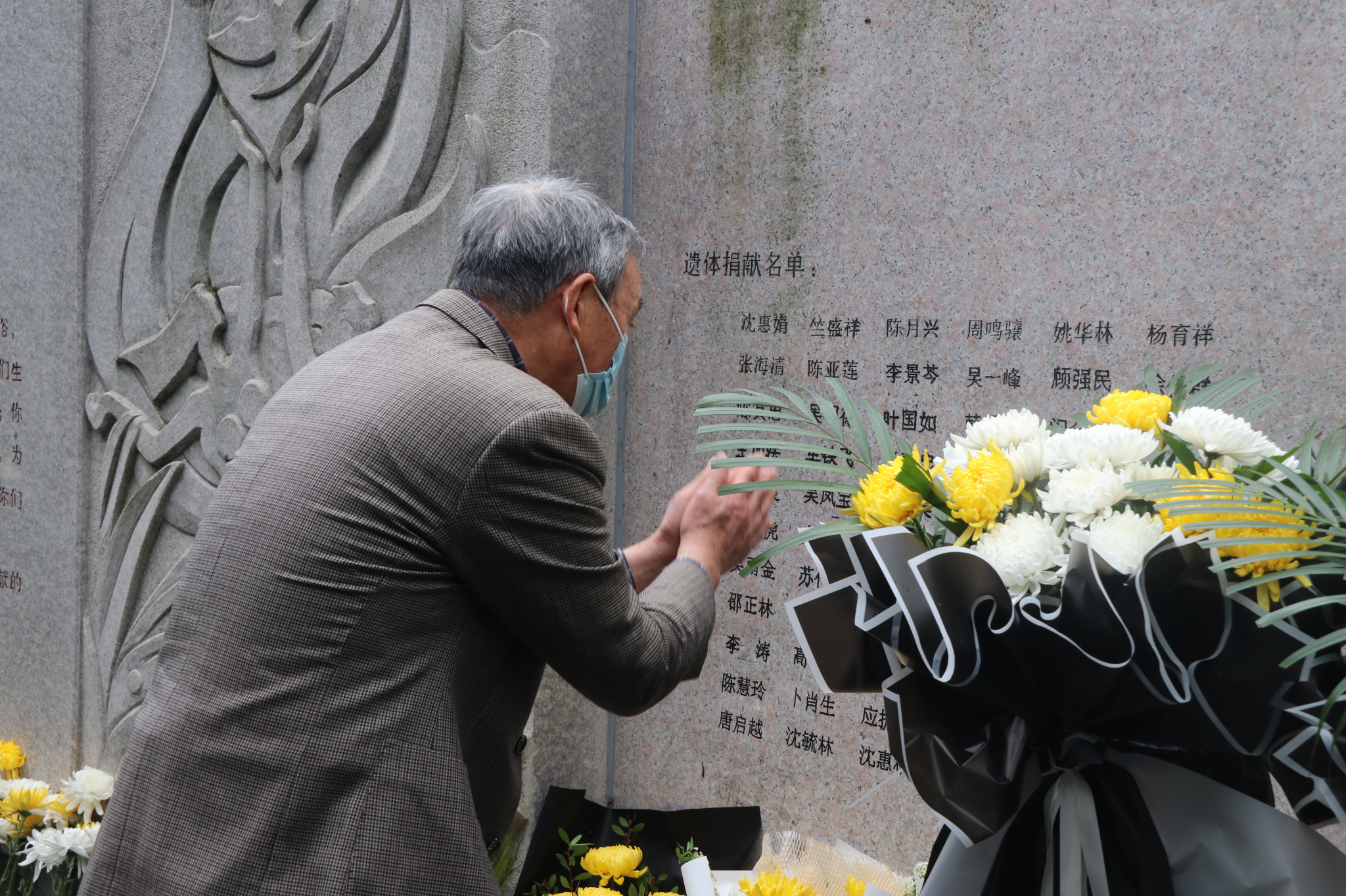 不能言传,则以身教。嘉兴大学副校长(主持日常工作)张琦表示,遗体(器官)捐献者在生命之旅到达终点之时,用一种特殊的方式为自己的人生谢幕,用大爱升华了生命的意义,留下最后的馈赠。他们的精神如苍松翠柏般伟岸、光明。缅怀遗体(器官)捐献者既是一次生动的科学教育,也是一次深刻的生命教育,更是一次深远的思想政治教育。希望广大医学生牢记初心使命,珍惜医学资源,扎实学习专业知识,强化专业技能,积极参与社会实践,志做医德模范、大国良医。希望与大家共同努力,以嘉兴大学无语良师纪念活动为依托,弘扬捐献者无私奉献的大爱精神,倡导和推动公民逝世后捐献遗体或器官的社会文明新风尚。