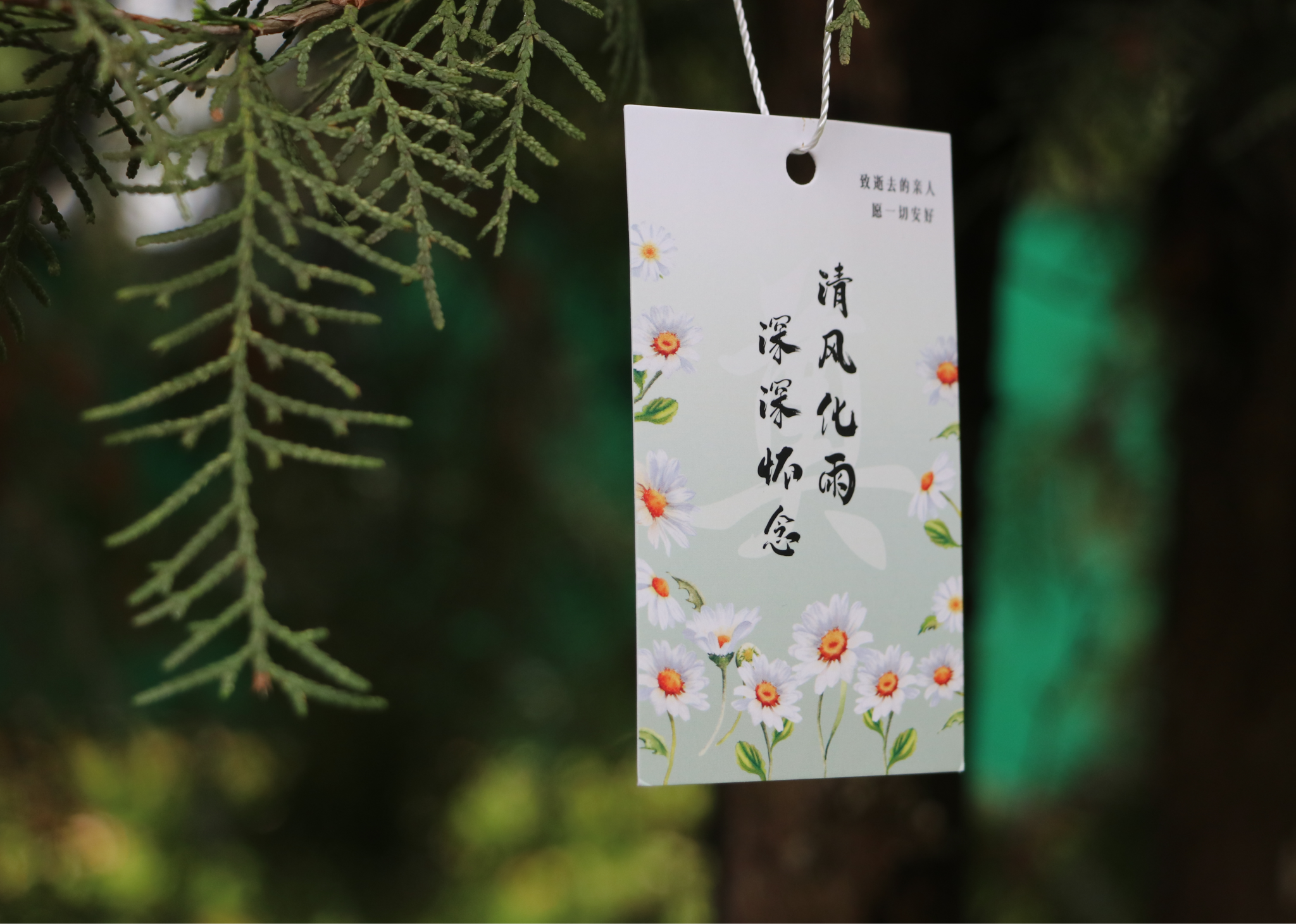 烛影长明,照杏林春满。默默无语,胜万语千言。师生代表,家属代表一一走到无语良师碑前,鞠躬、献花,泛红的眼圈、沉重的脚步、洒落的泪珠、停留在捐献者名字上久久不愿放下的双手……这一幕幕都深深触动着每一位医学生的心。寄语松梢,思情未来。学生们在卡片上写下自己的祝愿与梦想,敬意与期望,用一笔一划组成的注脚表达对无语良师的缅怀和敬意。虽然未曾谋面,但这份跨越时空的大爱与精神,已被同学们铭记于心。