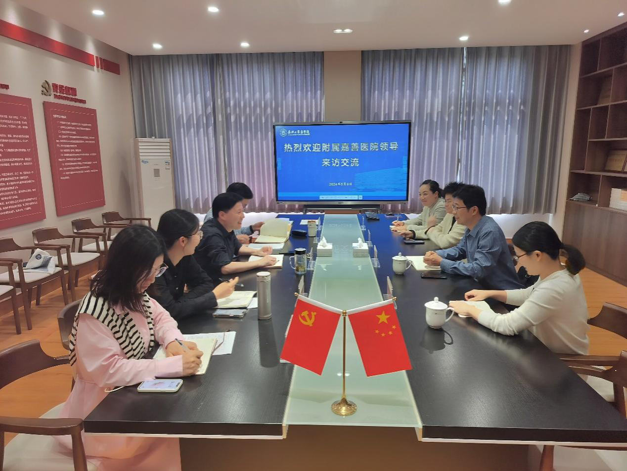 5月6日下午,附属嘉善医院副院长朱敏刚一行来365bet 交流。365bet 院长何治,副院长王敏、孙李丹出席座谈会。