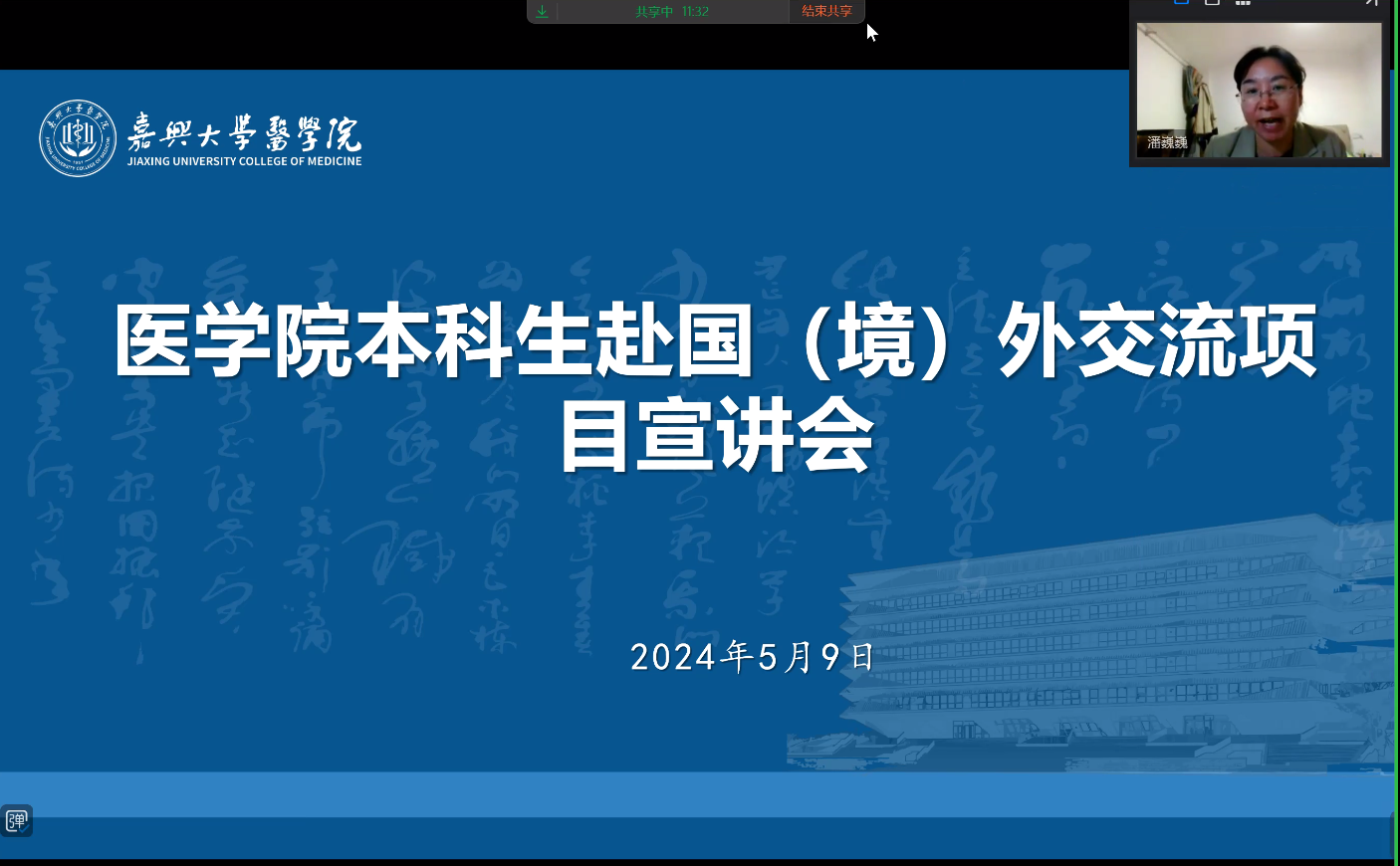 党委副书记朱莹,国际交流与合作处国际交流科何俸华为学生宣讲,会议由孙李丹副院长主持。