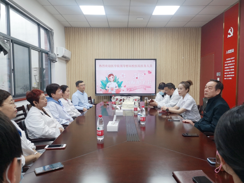 为纪念第113个“5·12”国际护士节,传承南丁格尔精神,弘扬优质护理文化,5月11日下午,医学院党委书记陈云飞到校医院慰问全体医务人员。