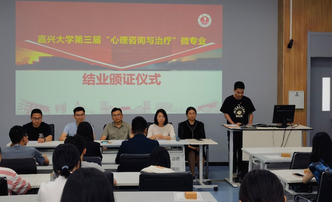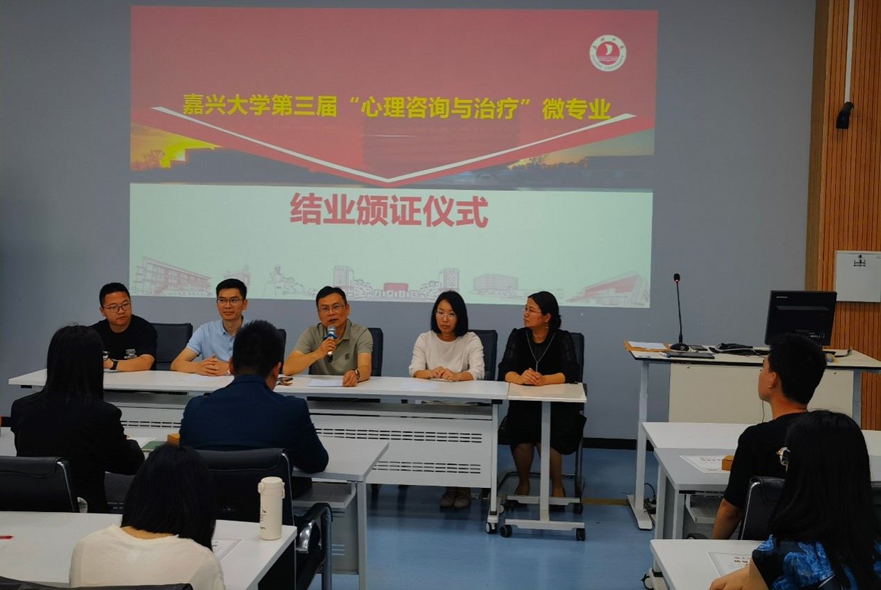 5月23日,嘉兴大学第三届“心理咨询与治疗”微专业结业仪式在仁心楼323智慧教室举行。仪式由教学团队负责人王凤华教授主持,微专业教师团队石统昆、王筝、童林泉等老师及第三届微专业结业学生参加,365bet