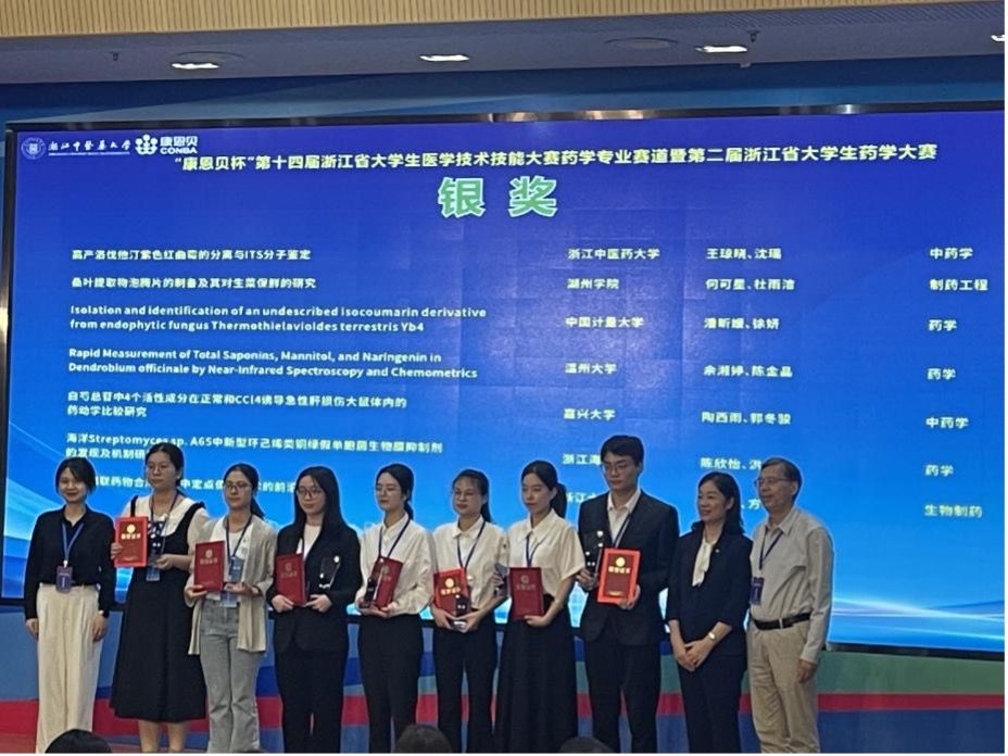 来自浙江大学、温州医科大学、嘉兴大学等高校的数十支队伍参加了大赛,我院和系部精心准备,通过初赛选送科技成果视频的竞争筛选,决赛的实验技能考核和项目汇报,最终药学专业学生团队在本次大赛荣获1银2铜,获奖数量并列全省第二,获奖质量位居全省前列,充分展现了我校药学专业学生的优良精神风貌与综合素质,彰显了学生团队合作和解决问题的能力。