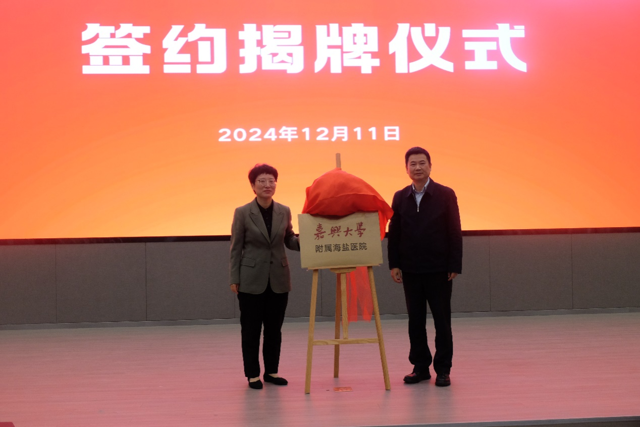 沈希和海盐县委副书记、海盐县人民政府县长顾秋莉为附属海盐医院揭牌