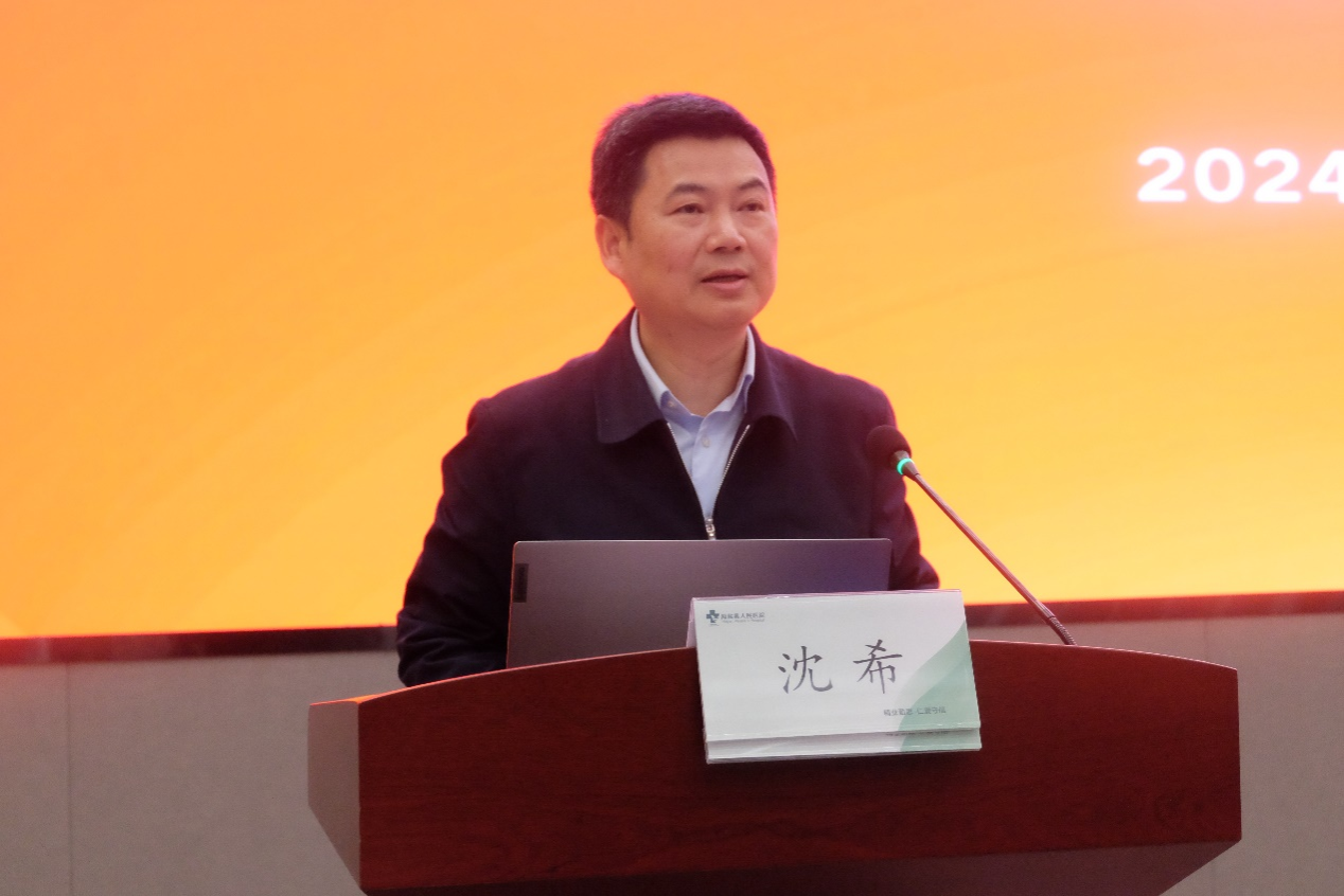 沈希介绍了学校的办学历史和办学特色。他代表嘉兴大学向长期关心支持我校发展及学校附属医院筹建的各位领导、朋友表示诚挚的感谢,同时向医院的全体员工致以美好的祝愿。他表示,医学教育是卫生健康事业发展的重要基石。当前,学校正深入落实健康中国战略、教育强国战略,持续发挥综合性大学优势,以新医科建设统领医学教育创新发展,努力培养更多复合型医学创新人才。他指出,嘉兴大学附属海盐医院的签约揭牌,标志着我校与海盐县人民医院双方的战略合作进入了新阶段。学校将和海盐县人民医院一道,以今天的揭牌仪式为新的起点,不断深化医教研深度融合,推动人才培养、学科建设、科研创新、资源共享等全方位合作,共同打造高层次人才的培养基地、高水平科研成果的转化基地、高质量医疗服务的示范基地,为培养国家需要的高素质医学人才、守护一方人民健康福祉作出更大贡献。 他相信,在各级领导和有关单位的关心支持下,在学校和海盐县人民医院的共同努力下,嘉兴大学附属海盐医院一定会越办越好!