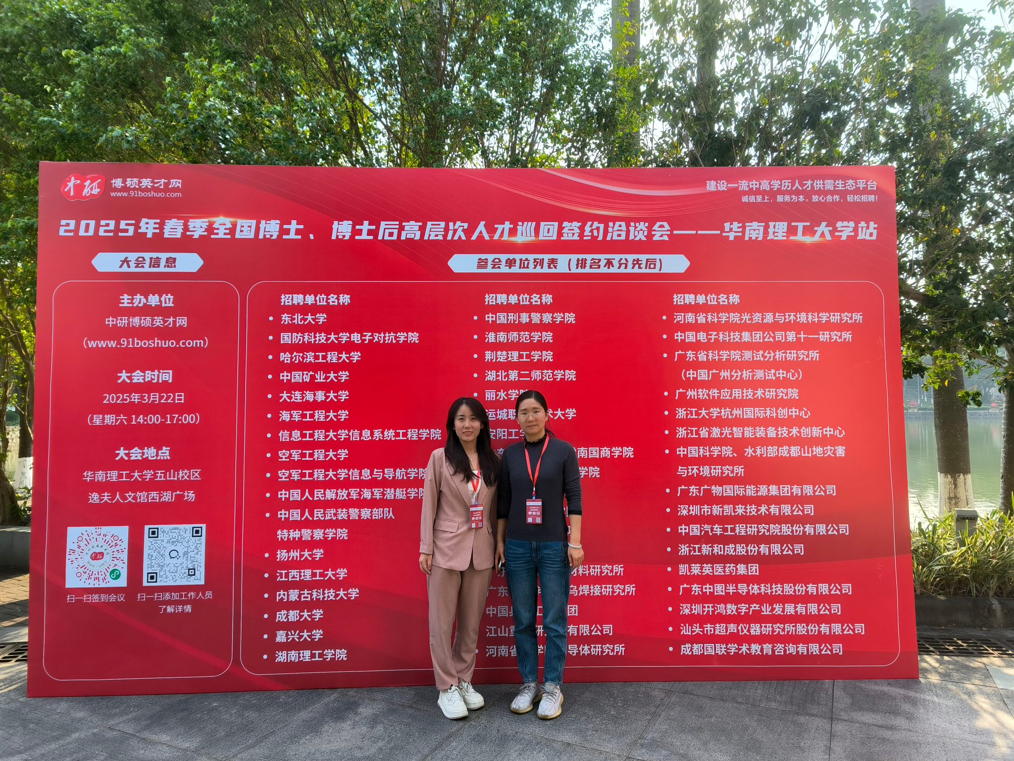 为积极宣传我校高层次人才引进政策,进一步加强与国内知名高校的联系与交流,3月22日,365bet 副院长孙李丹带队赴青年教师熊佳丽的母校所在地广州参加“2025年春季全国博士、博士后高层次人才巡回签约”现场洽谈会。