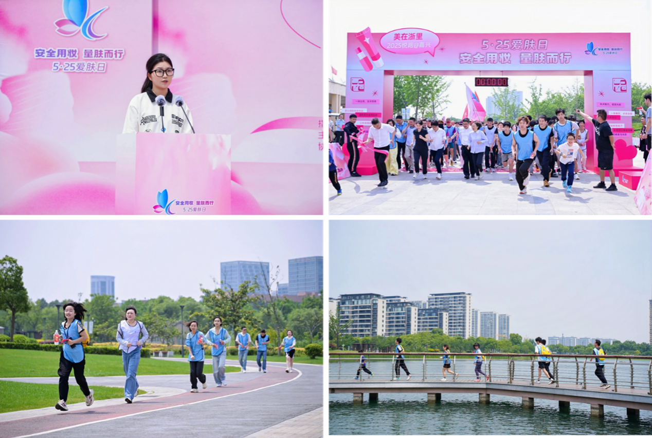 活动同步举办“美在浙里·2025悦跑@嘉兴”活动,通过绿色运动载体将“科学护肤”与“健康生活”深度融合。我院药学系教师党支部联合药学系学生党支部组建的25名师生跑团参加了这场科普与运动交织的“悦跑”活动,以专业力量与青春活力,绘就了一道独特的风景线。