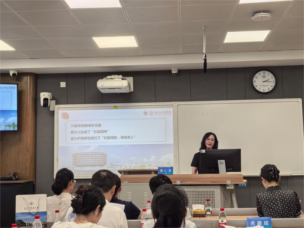 肖素香教授以“红船精神为引领护理学专业课程思政体系的构建与实践”为主题,作主旨报告,介绍了嘉兴大学护理学专业的发展现状和取得的成绩,分享了学校围绕红船精神开展思政育人工作的特色做法与实践成果,强调将红船精神贯穿于护理学专业人才培养全过程,推动思政教育与专业教育同向同行、同频共振。同时,肖教授围绕护理学专业未来建设思路,提出了完善课程思政体系、提升教师思政教学能力、深化产教融合、拓展国际交流合作等发展方向,助力护理学科高质量发展。