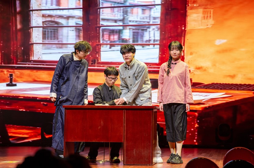 第二篇章以“青春绽放,白袍飞扬”为主题,医学生们呈现了一场精彩纷呈的文艺演出。开场舞《Better up》活力四射,瞬间点燃全场热情;歌曲串烧《童年集结号》温情脉脉,唤起师生共同回忆;戏剧《笔锋与战歌》,以抗战时期学者“以笔为剑、凝聚民族魂”的事迹为题材,抒写深沉家国情怀,引人共鸣;藏族舞蹈《High原》凭借特色服饰与优美舞姿,生动展现高原风情,感染力十足。